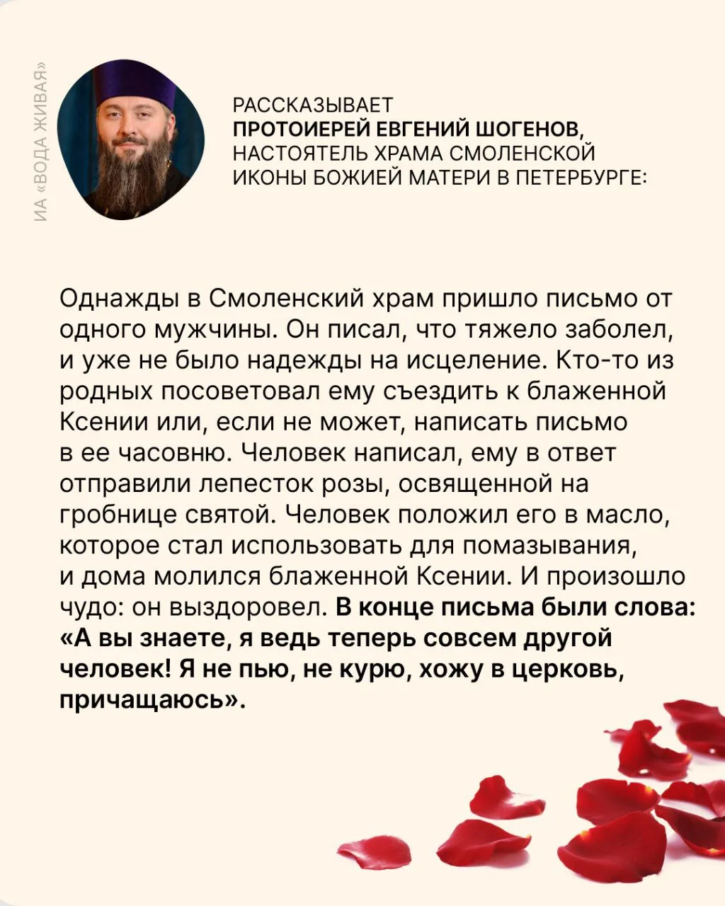 И сегодня, по прошествии чуть более тридцати лет после прославления святой, люди продолжают обращаться к ней с просьбами о помощи, приходят на ее могилу на Смоленском кладбище. Ко дню памяти блаженной Ксении мы поговорили с людьми, имеющими личный молитвенный опыт обращения к ней, и записали их удивительные истории.