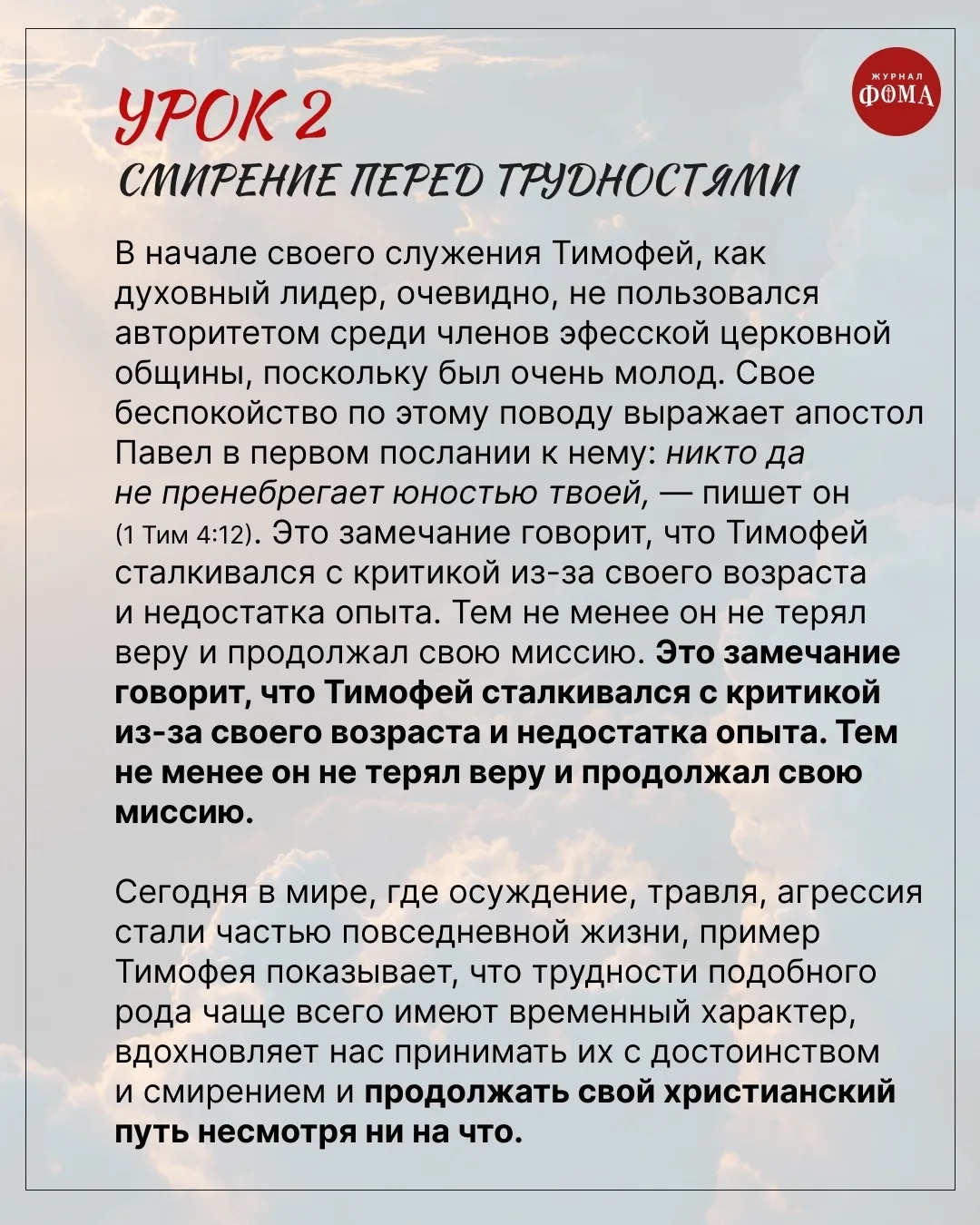 Отдельные черты апостола Тимофея, особенности его характера, проблемы, с которыми он сталкивался, раскрываются при чтении Павловых посланий.