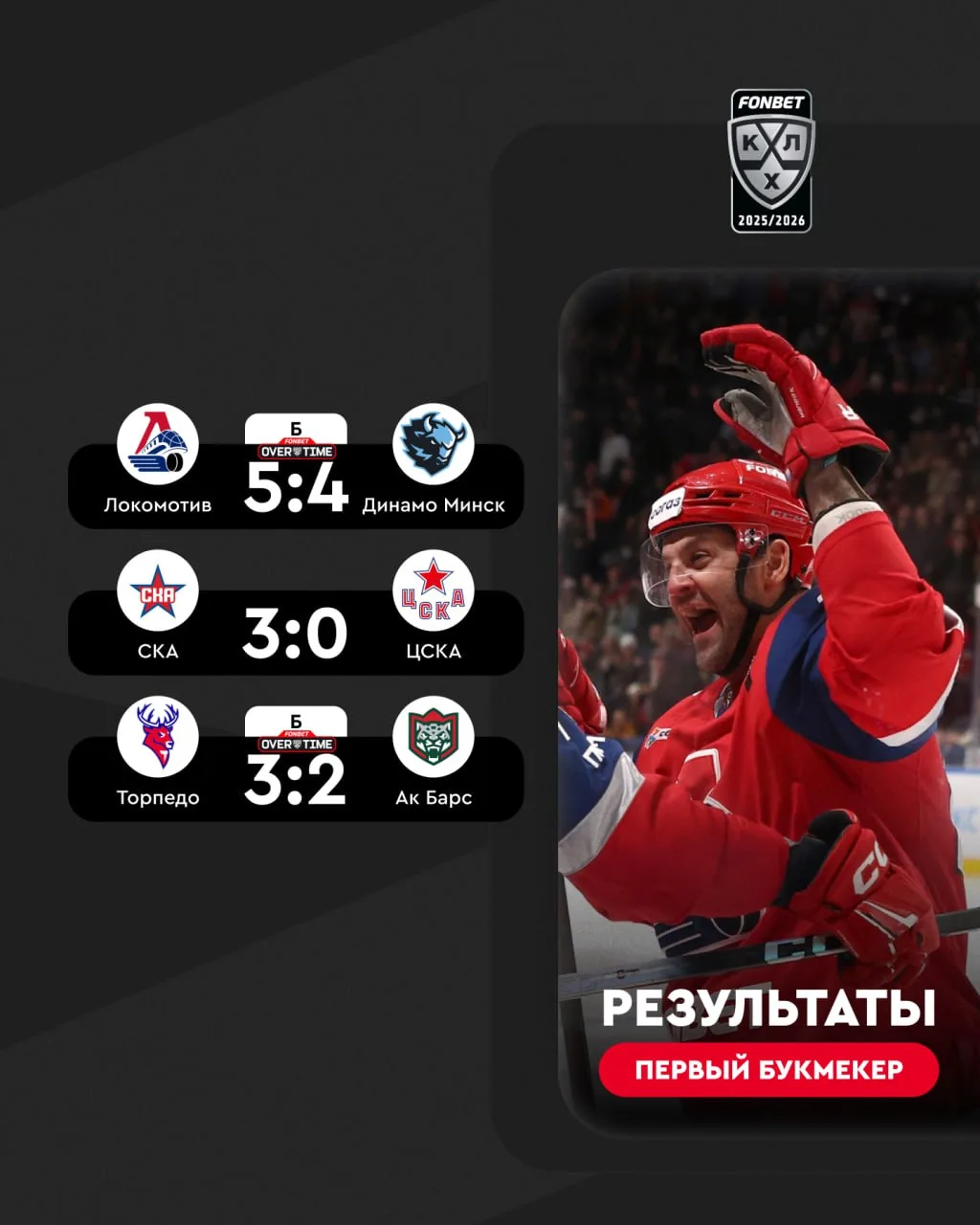 ⚡🏒 Знакомим тебя с итогами матчей FONBET Чемпионата КХЛ