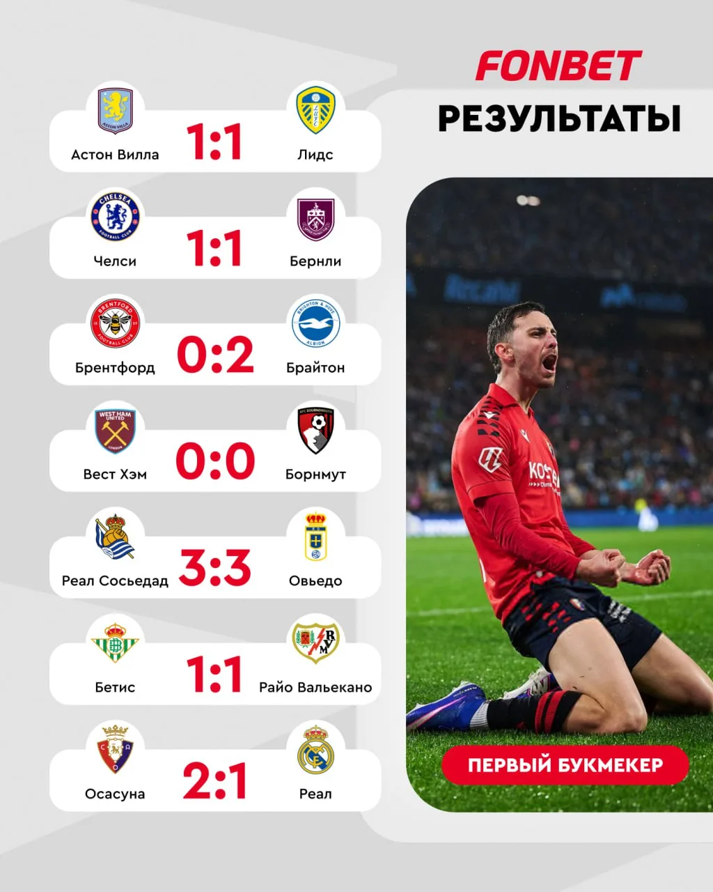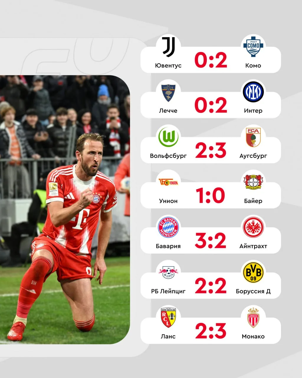 «Реал» впервые за 15 лет проиграл «Осасуне», «Комо» нанес «Ювентусу» третье поражение подряд, дубль Кейна принес победу «Баварии» и другие результаты 🔥