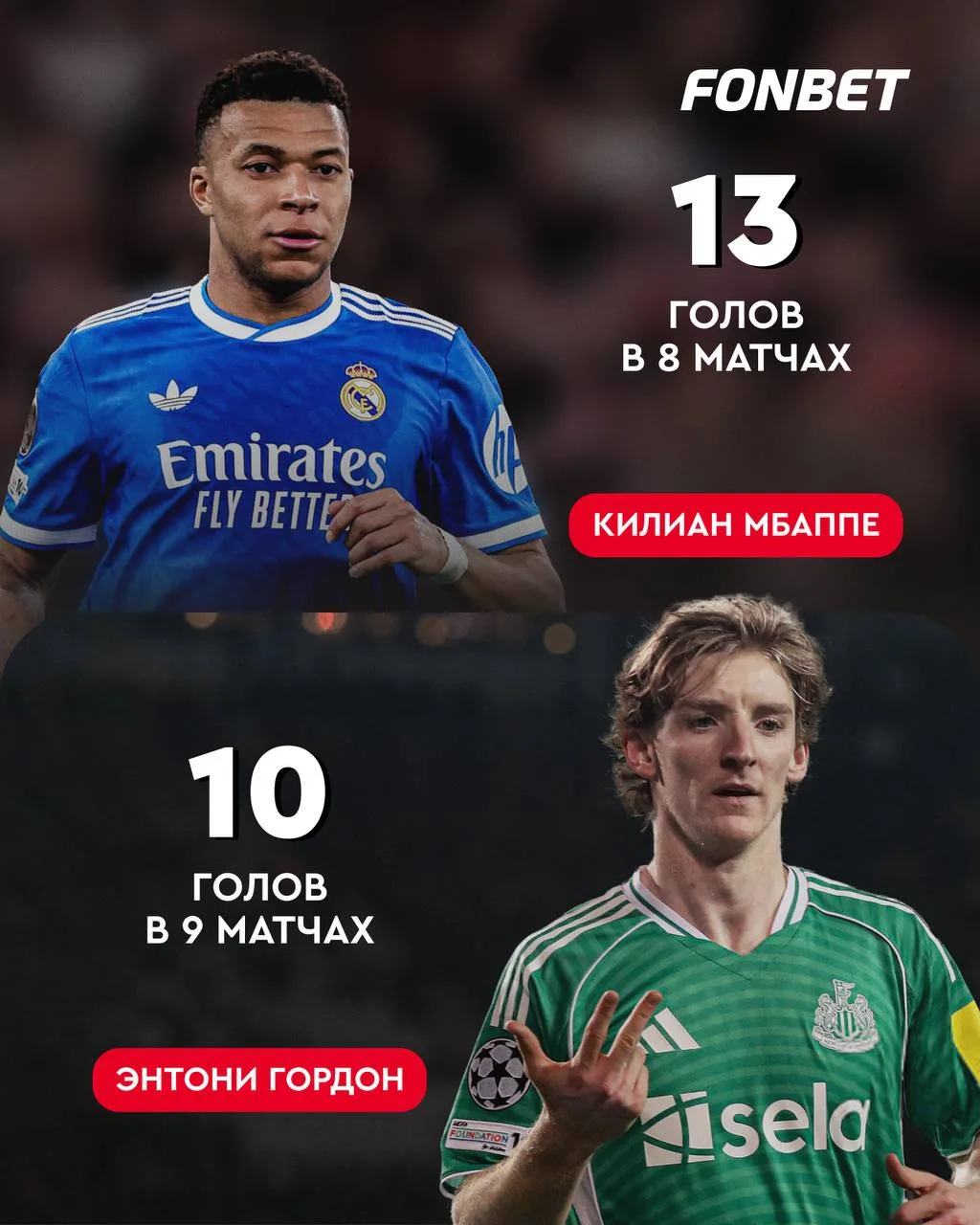 Игрок «Ньюкасла» оформил покер ворота «Карабаха» и стал лучшим игроком недели в ЛЧ. Теперь он разместился на втором месте топа бомбардиров следом за Мбаппе.
