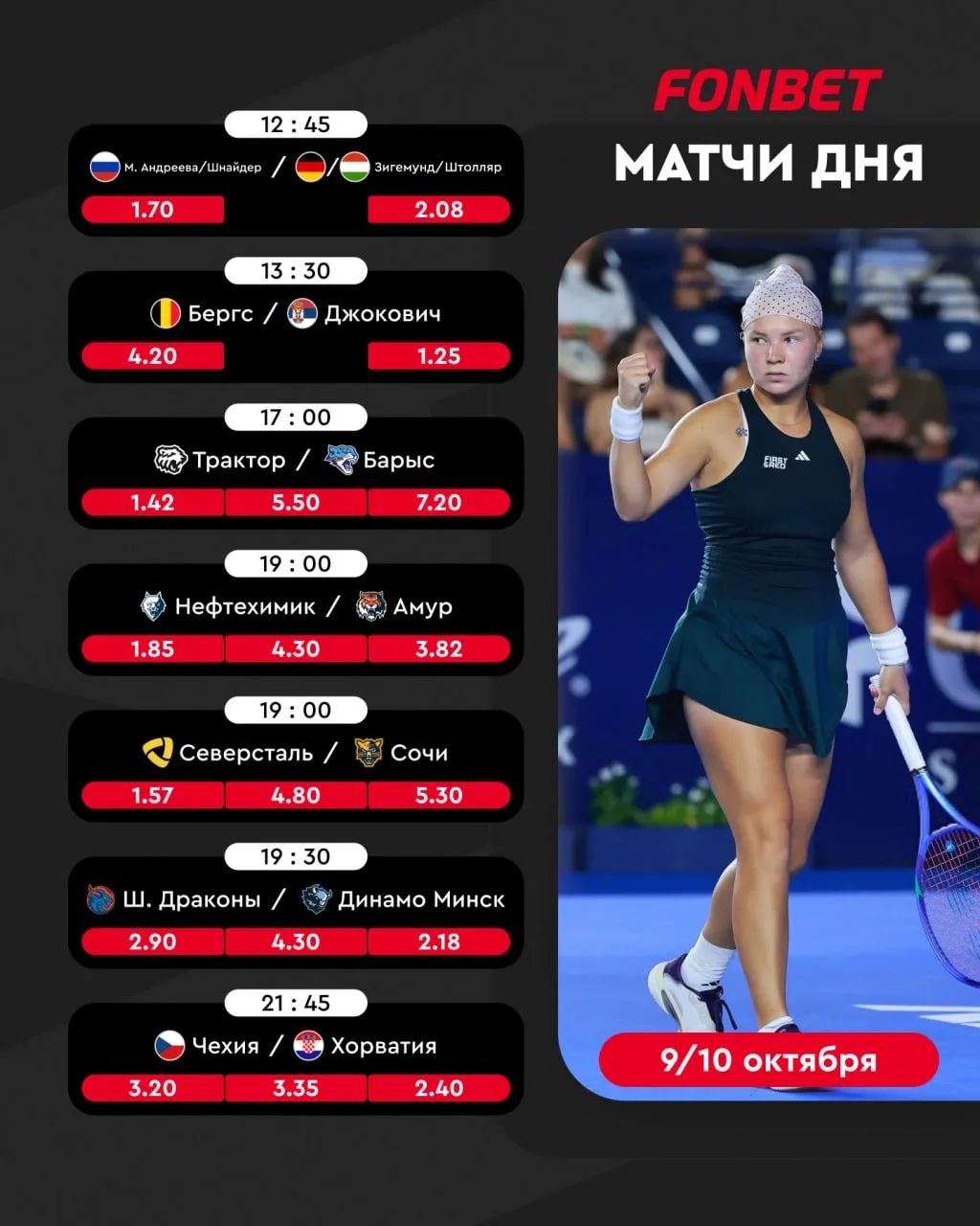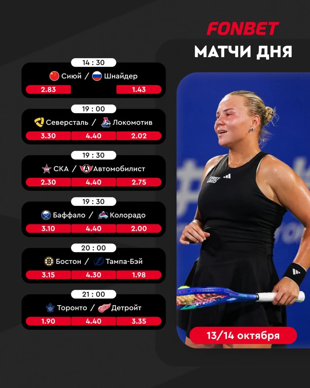 Диана Шнайдер в первом круге Нинбо откроет день, к ней на смену придут зарубы в НХЛ и FONBET Чемпионате КХЛ, а под вечер ворвутся топовые футбольные сборные ⚽️