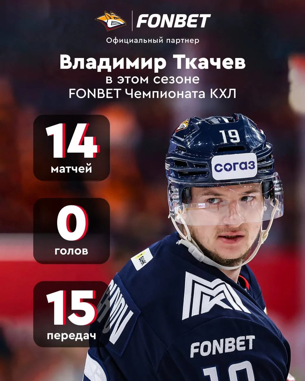 Лидер «Металлурга» пока не забросил ни одной шайбы, но помогает забивать партнерам — на его счету 15 ассистов в 14 встречах.