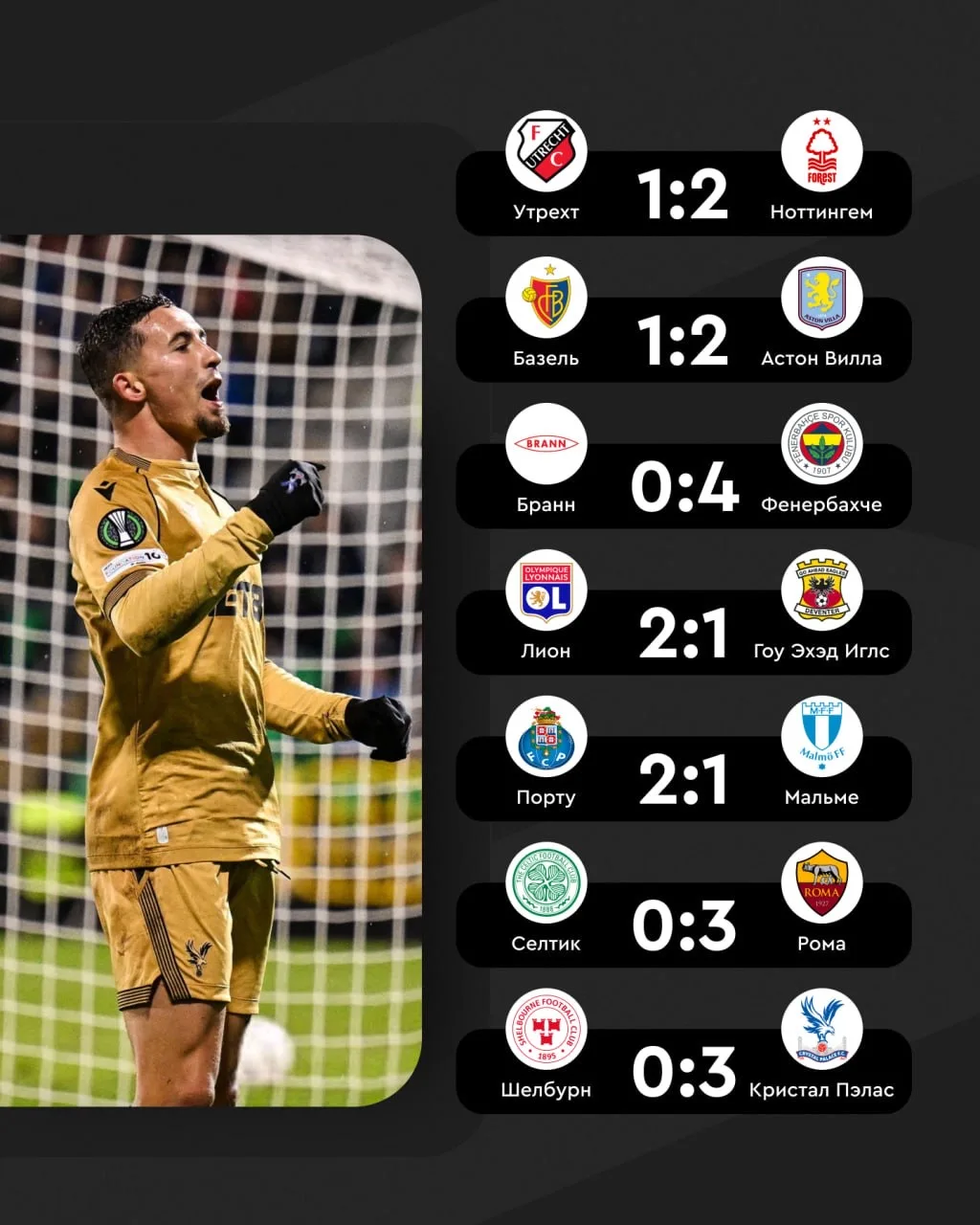 «Лион» закончил год на первой строчке ЛЕ, ПАОК упустил победу после замен Оздоева и Чалова, «Астон Вилла» выиграла восьмой матч подряд и другие результаты ⚽️