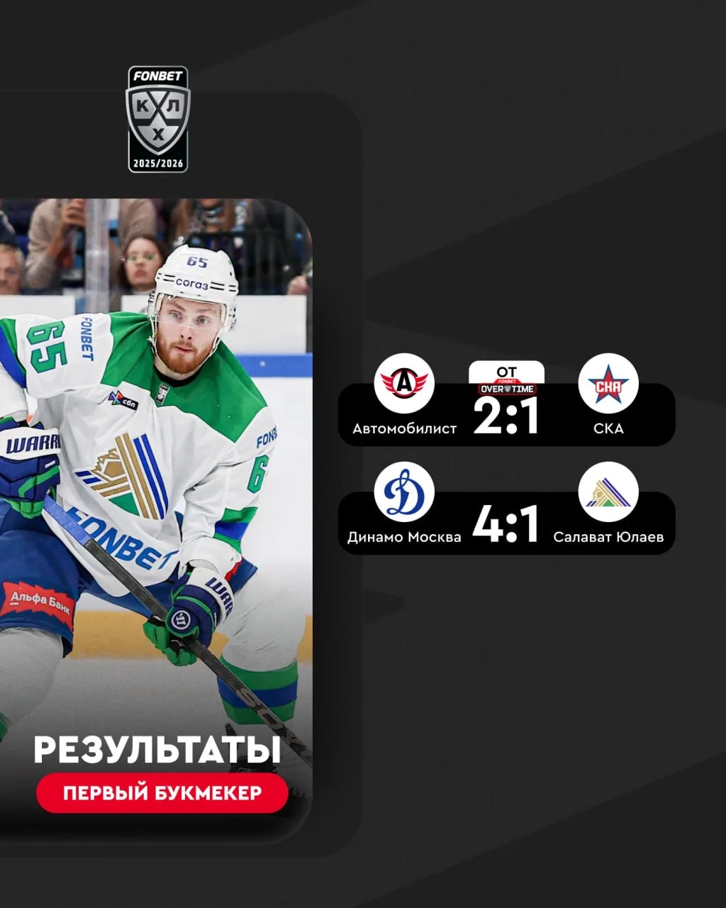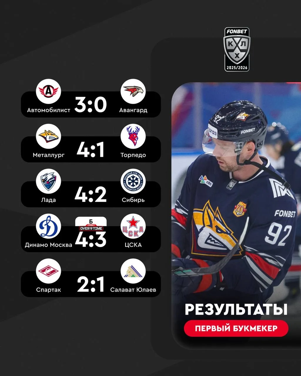 ⚡🏒 Сегодня в FONBET Чемпионате КХЛ было два матча