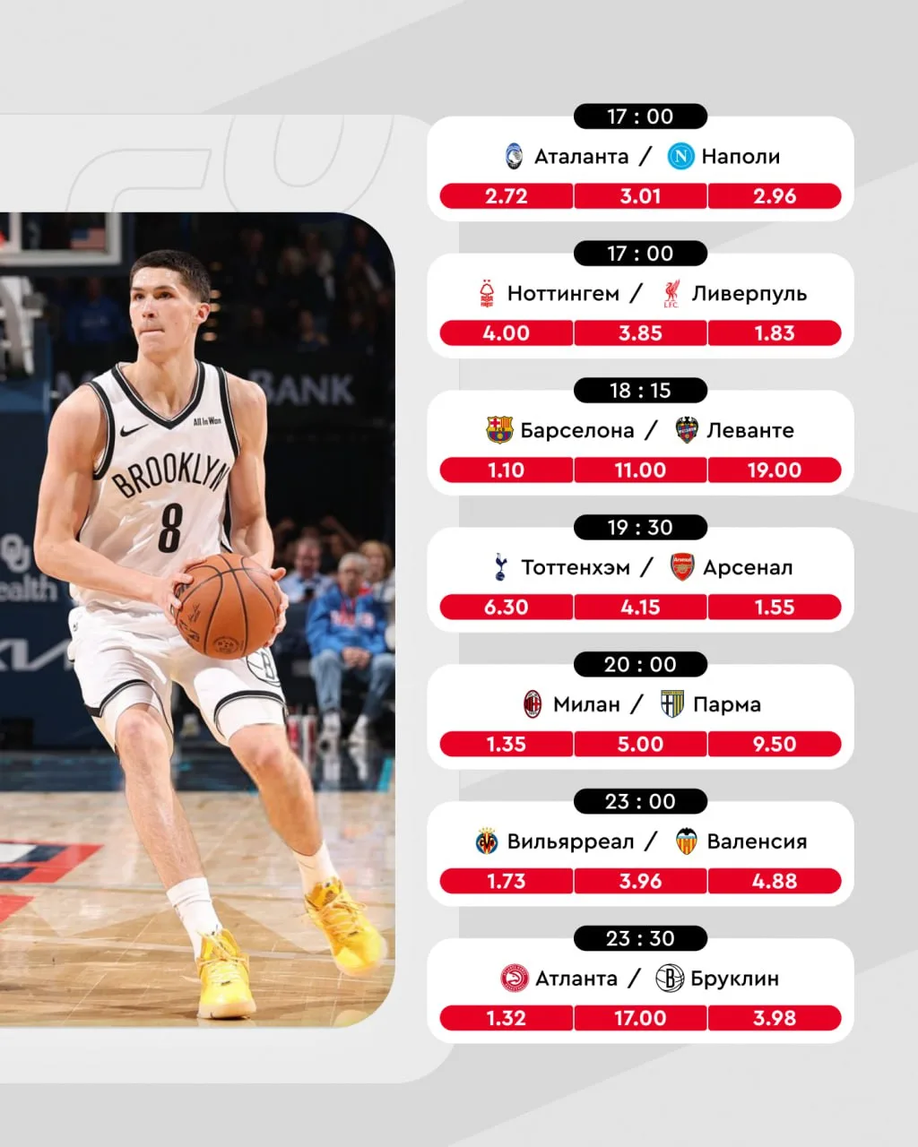 Теперь помимо ставок на НБА, появилась прогнозная механика на серию событий в матчах нашего амбассадора. Заходи на сайт, участвуй в активностях, зарабатывай баллы и выигрывай уникальные призы от Егора.