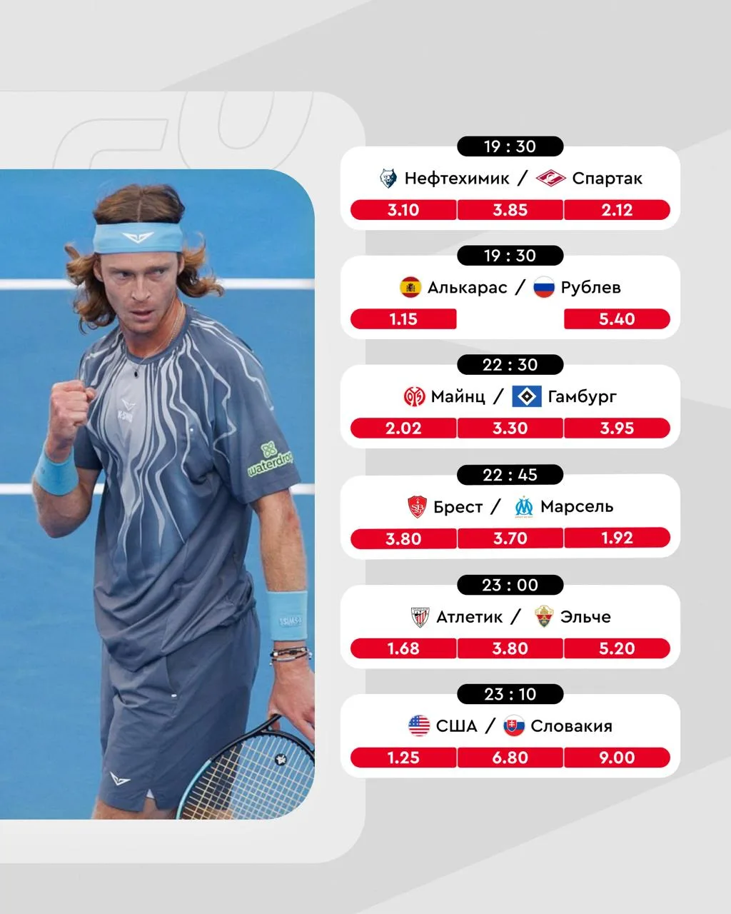 Нас снова ждёт борьба наших теннисистов на кортах, две яркие вывески в FONBET Чемпионате КХЛ и продолжение еврокубков ⚽️