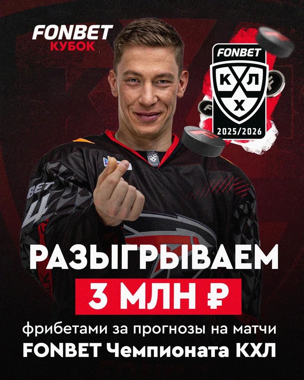 ❤️ Разыгрываем 3 000 000₽ фрибетами за прогнозы на FONBET Чемпионат КХЛ!