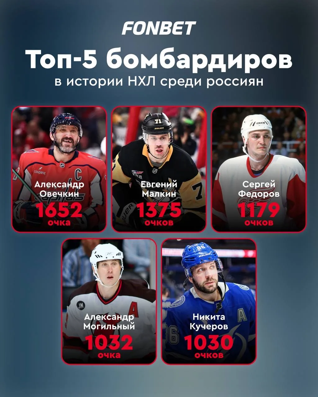 🔥🏒 Кучеров — в топ-5 самых результативных россиян в истории НХЛ