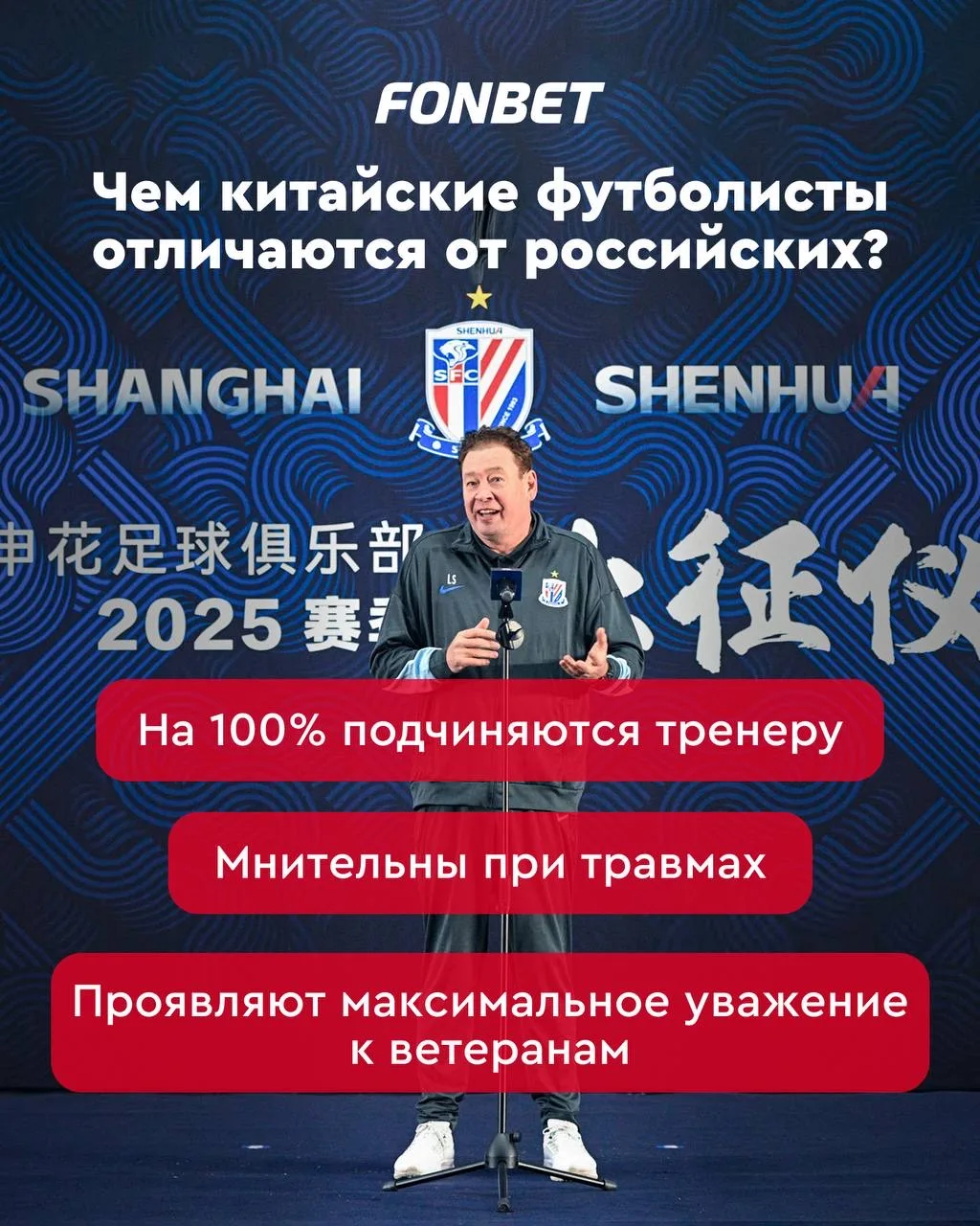 Главный тренер «Шанхай Шэньхуа» Леонид Слуцкий рассказал, чем отличаются китайские футболисты от российских.