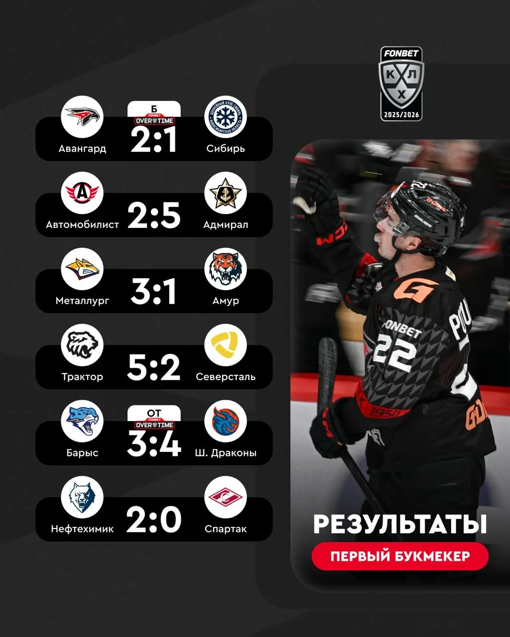 «Авангард» и «Шанхайские Драконы» решили все вопросы в #FONBETOVERTIME ⏱, Канцеров набрал 56-е (30+26) очко в сезоне, «Спартак» проиграл пятую игру из шести последних 👀
