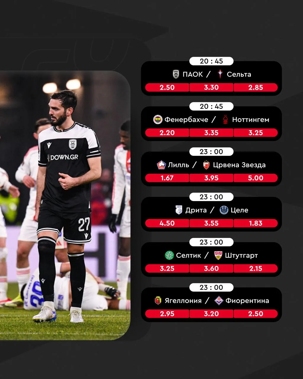 «Фенербахче» Тедеско разгромно влетел «Ноттингему» cо дна таблицы АПЛ, «Црвена» Станковича обыграла статусный «Лилль», а Оздоев ушёл с поля без голевых действий 🧐