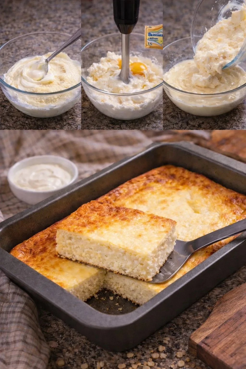 4️⃣ Вылить массу в смазанную форму, при желании смазать верх сметаной.