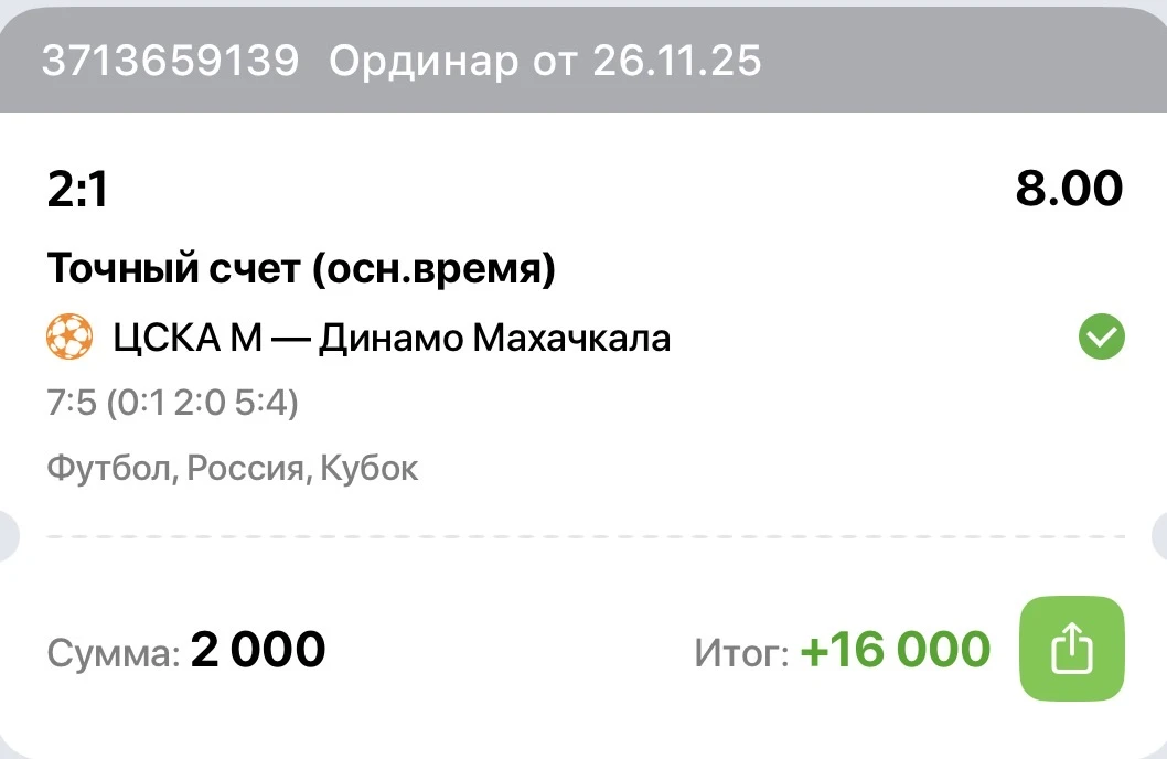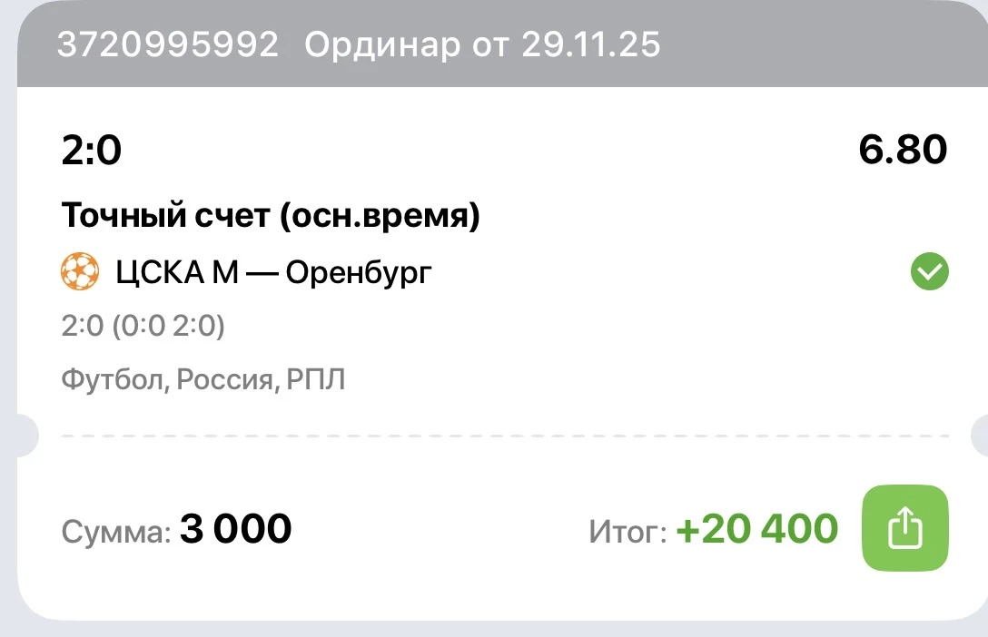 ЦСКА - самая предсказуемая команда. Два матча подряд взял точный счет и дико этому рад. Скоро Новый год, бабки мне нужны.