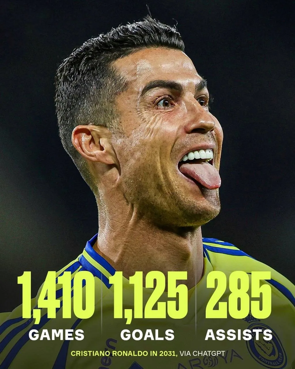 🤩 ChatGPT спрогнозировал статистику Роналду к 2031 году.