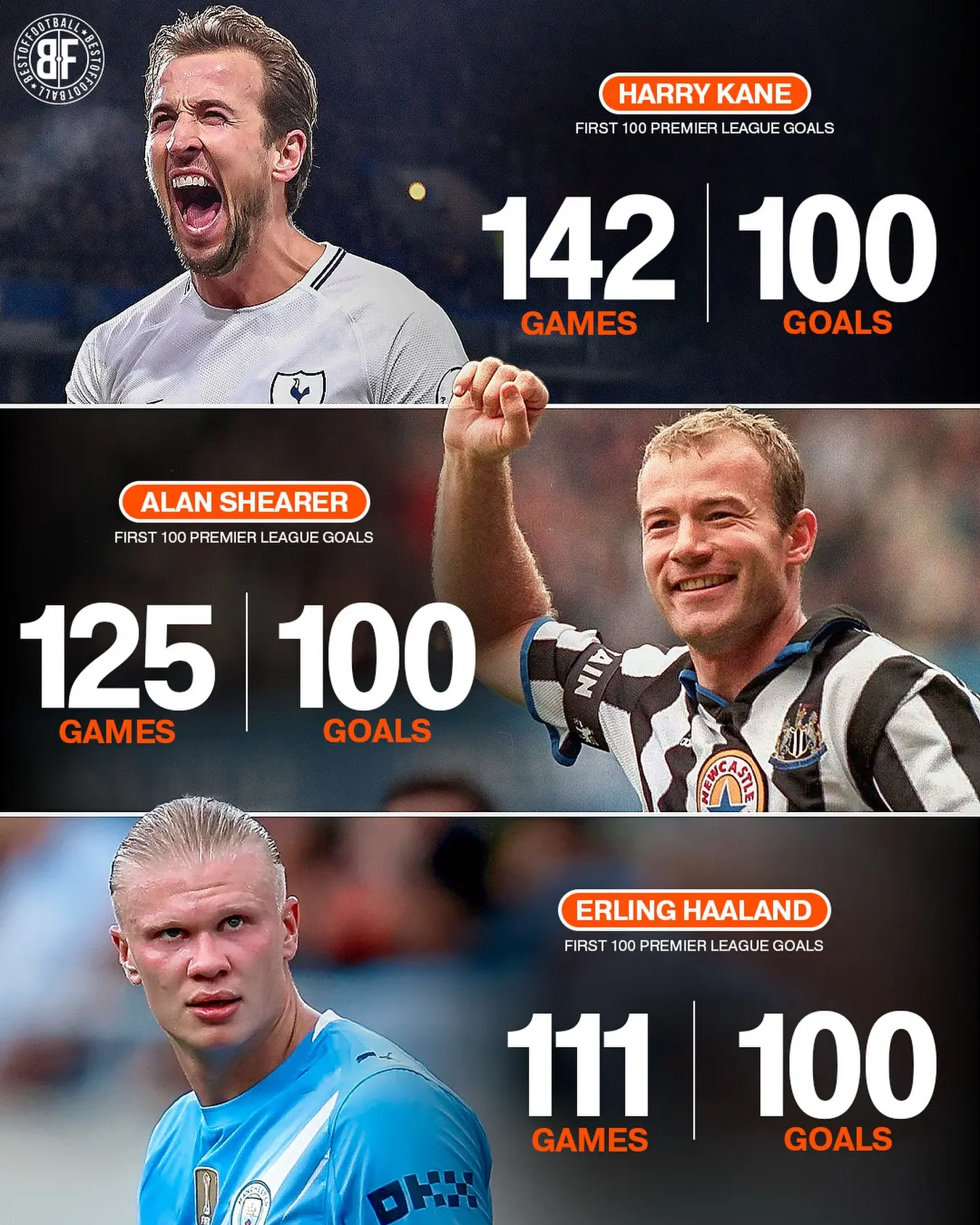 Теперь Холанд уверенно возглавляет топ-10 самых быстрых авторов ста голов в Премьер-лиге ⚽🤙