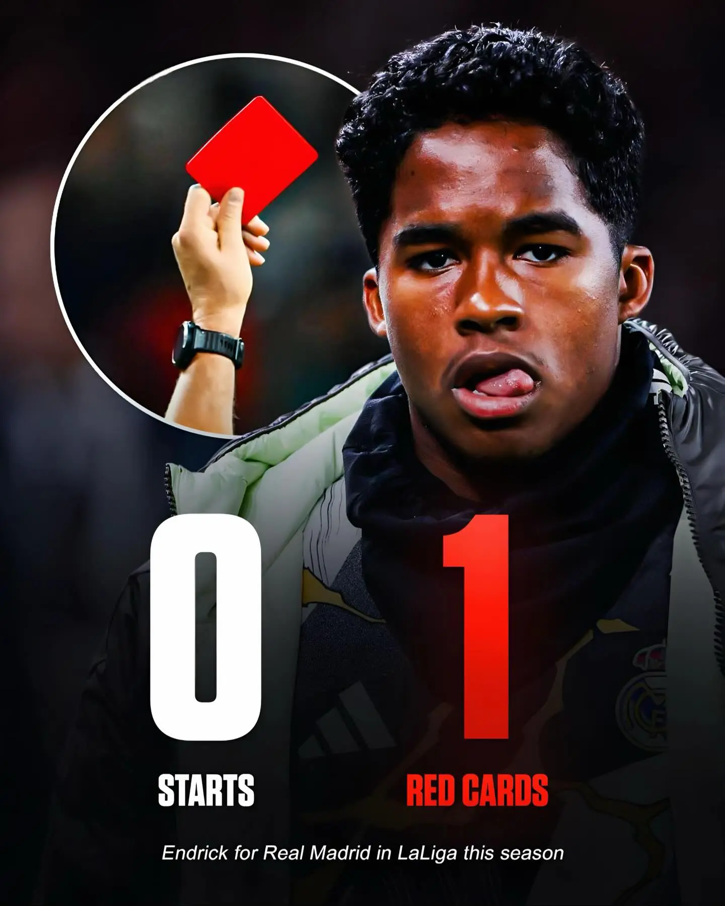 🚨У Эндрика теперь больше красных карточек, чем игра в «Реале» в новом сезоне 😭