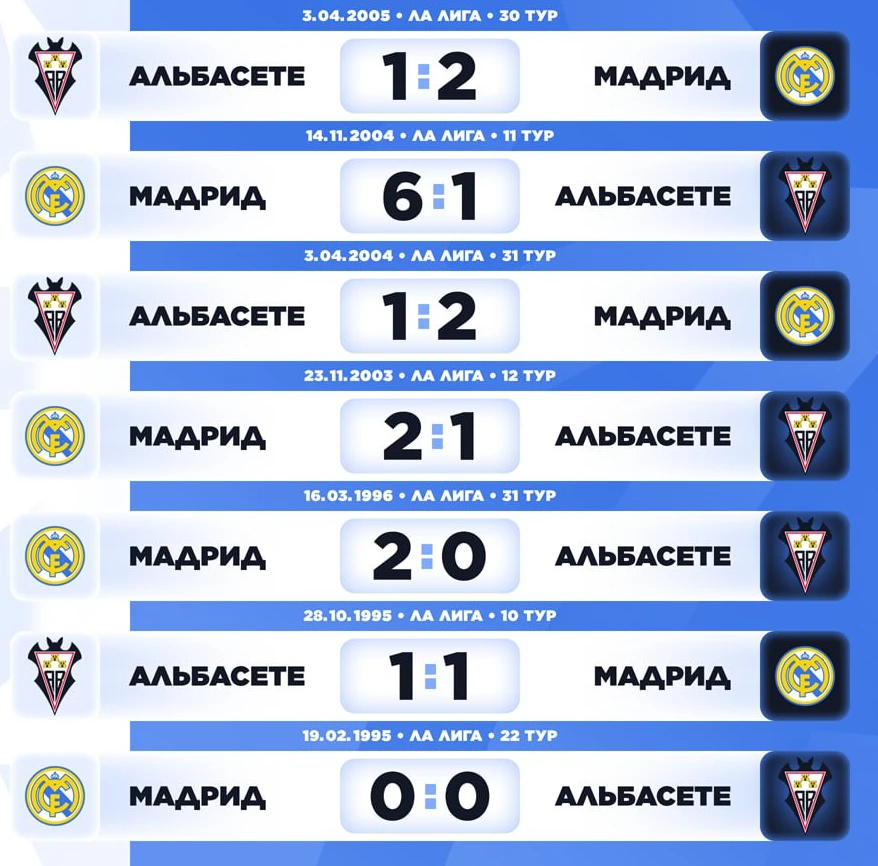 📊 Результаты последних матчей против «Альбасете».