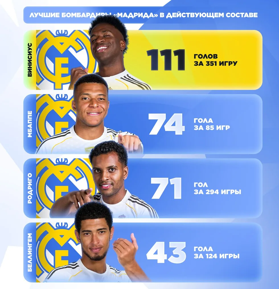 Лучшие бомбардиры «Реала» в действующем составе 📊