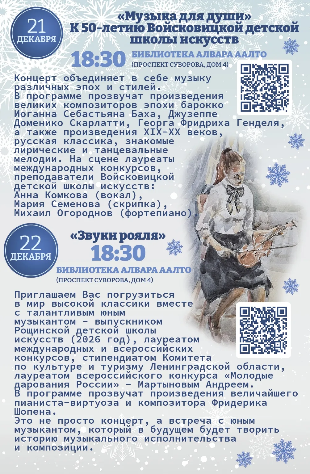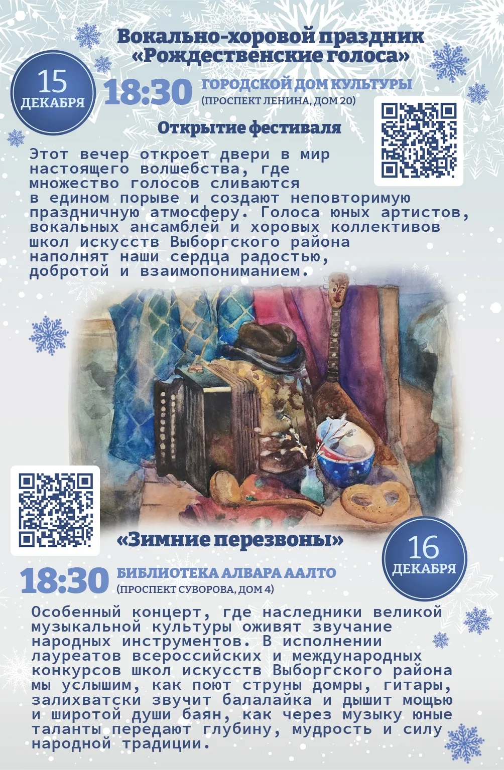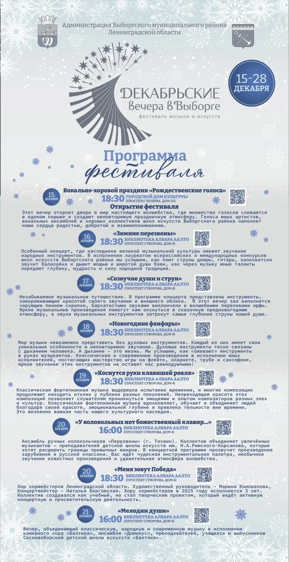 Программа фестиваля музыки и искусств «Декабрьские вечера в Выборге 2025» с 15 по 28 декабря.