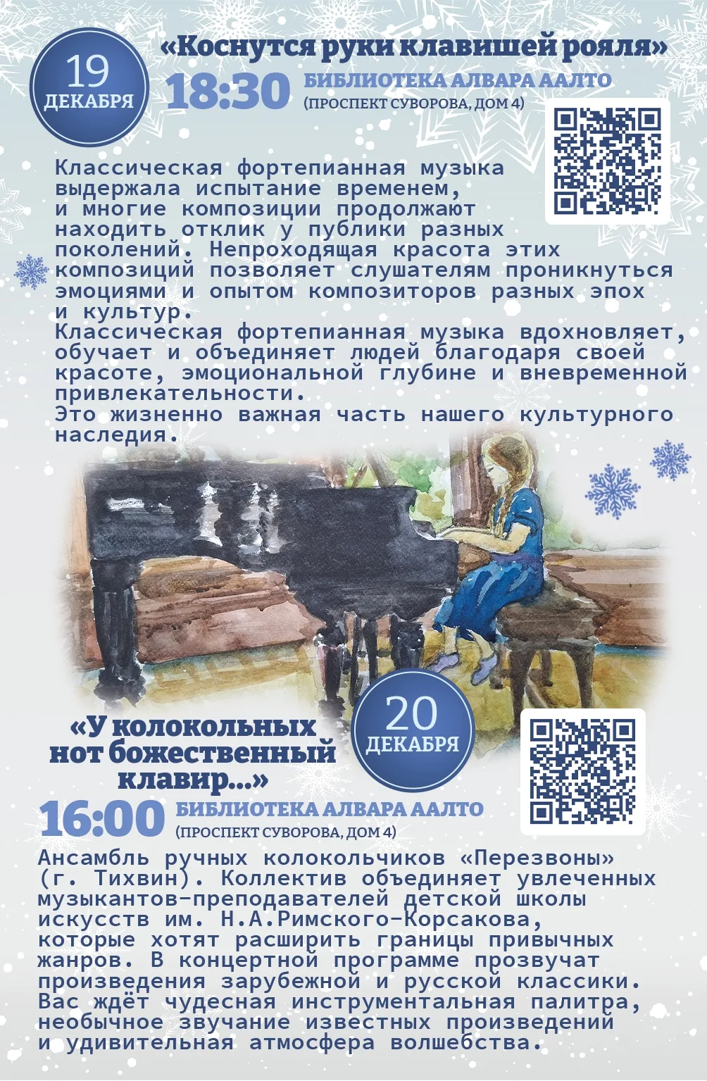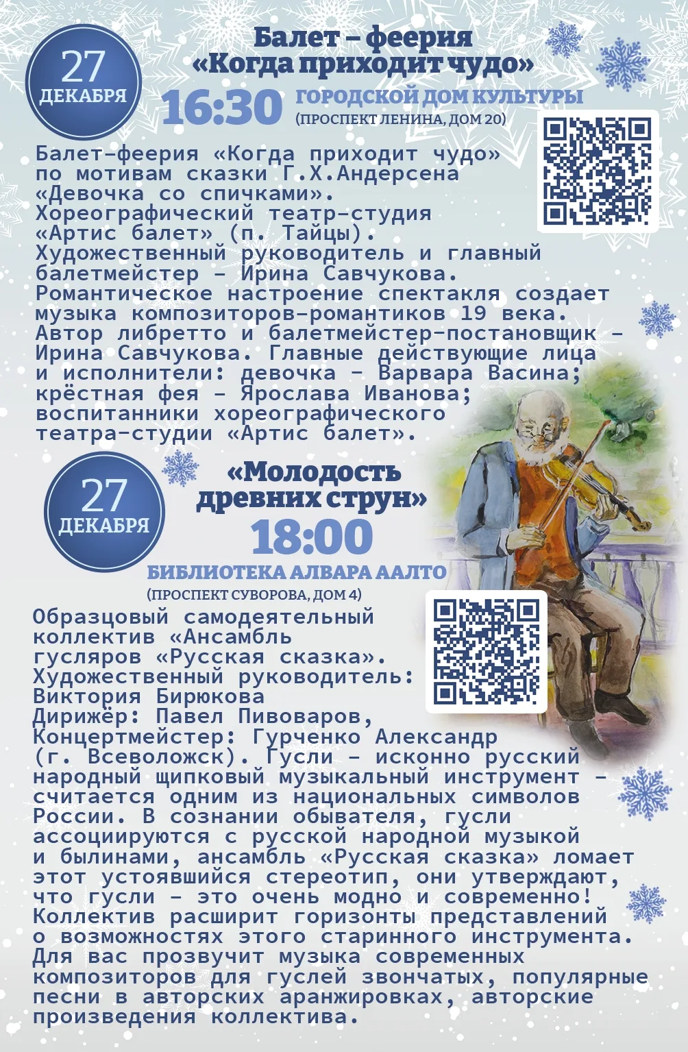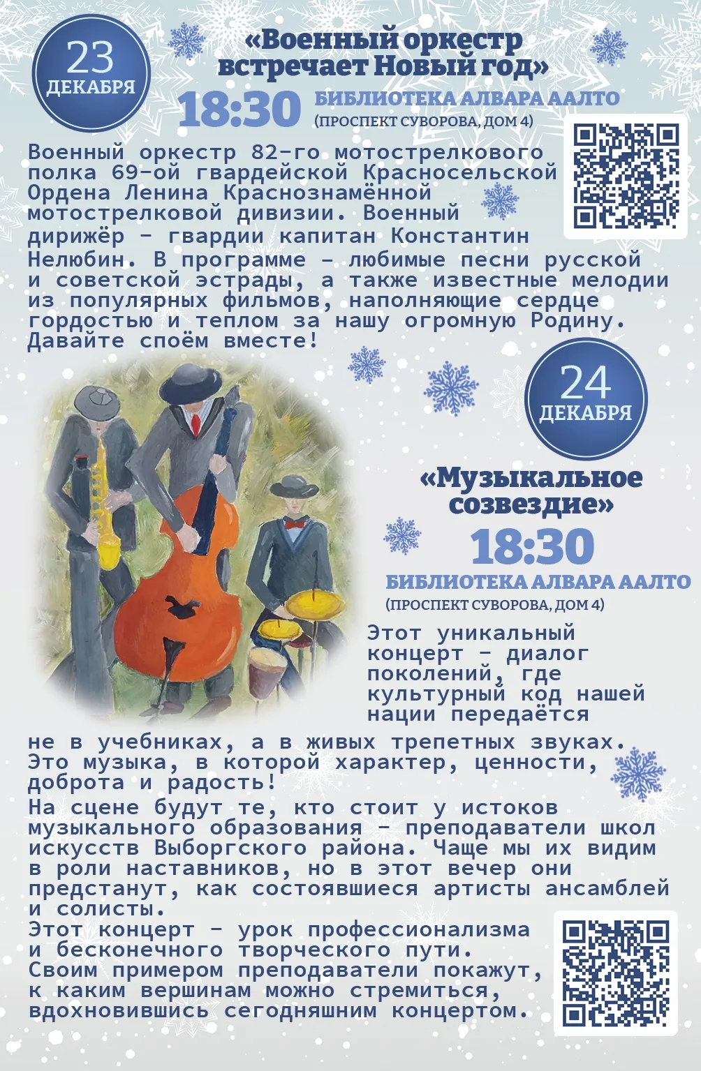 Программа фестиваля музыки и искусств «Декабрьские вечера в Выборге 2025» с 15 по 28 декабря.