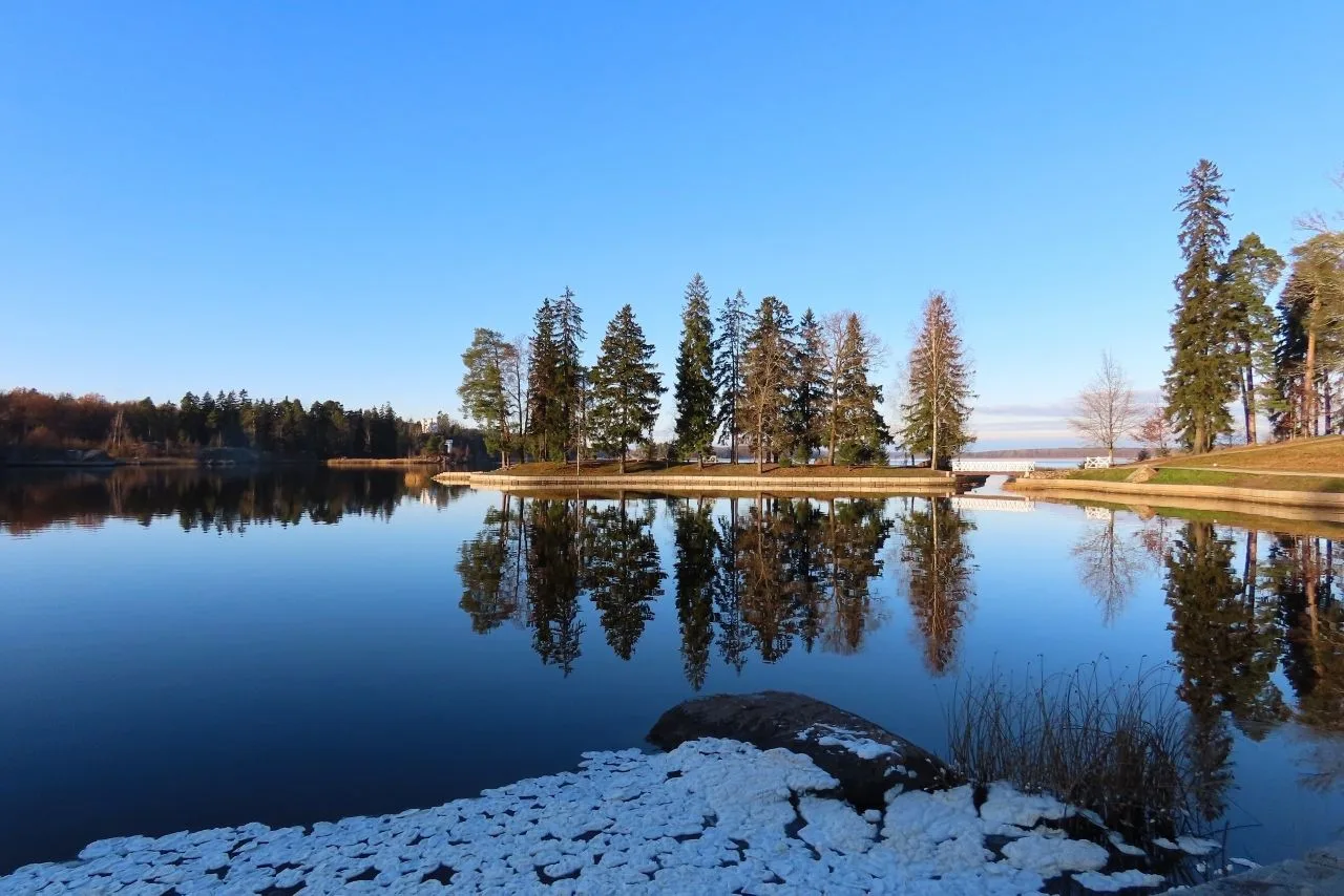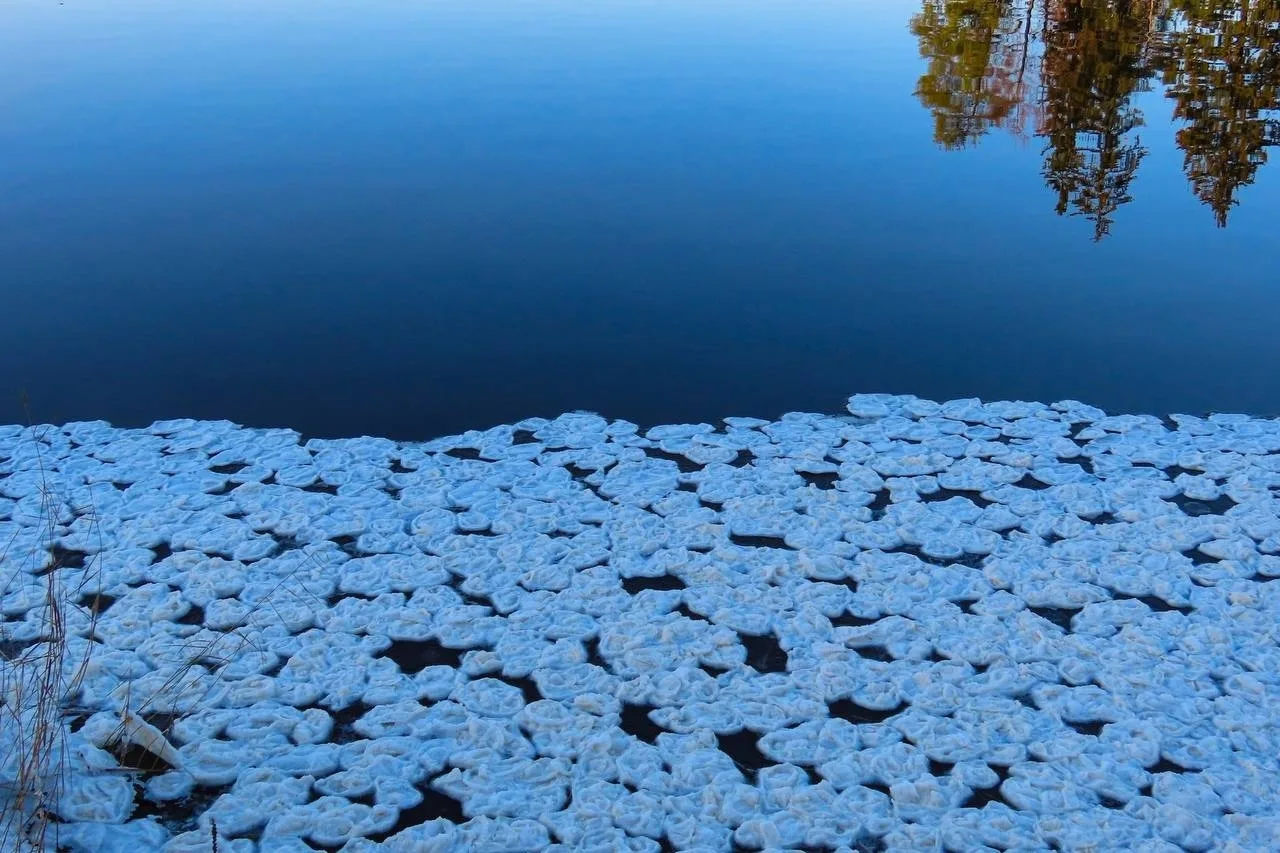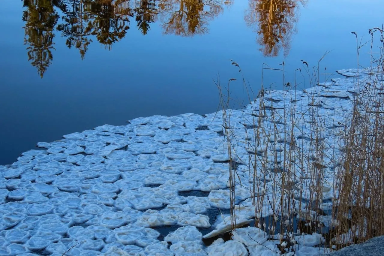 В музее-заповеднике "Парк Монрепо" заметили ледяные блинчики. Такое явление можно наблюдать, когда температура близится к нулю. На поверхности образуется каша, которая под воздействием ветра и течения делится на части и слипается.