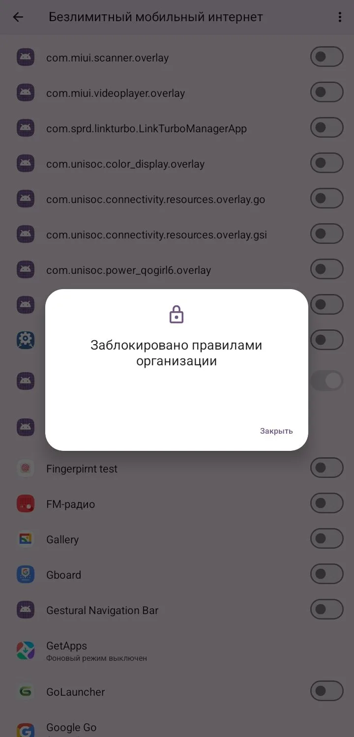 В связи с отсутствием допуска к настройкам settings данного телефона, альтернативное скаченное приложение settings блокируется администратором организации, в связи с этим невозможно обновить системные службы телефона. То есть не владелец телефона решает как работать устройству и обновлять системные службы и приложения, а решает администратор организации с помощью удалённого управления телефона (третий скриншот).