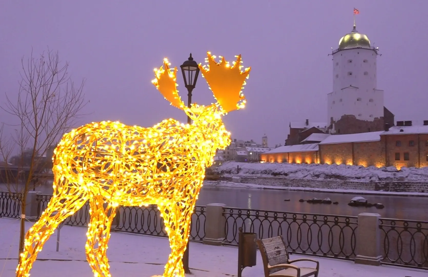 Включили праздничные гирлянды, Выборг превратился в сказочное место.