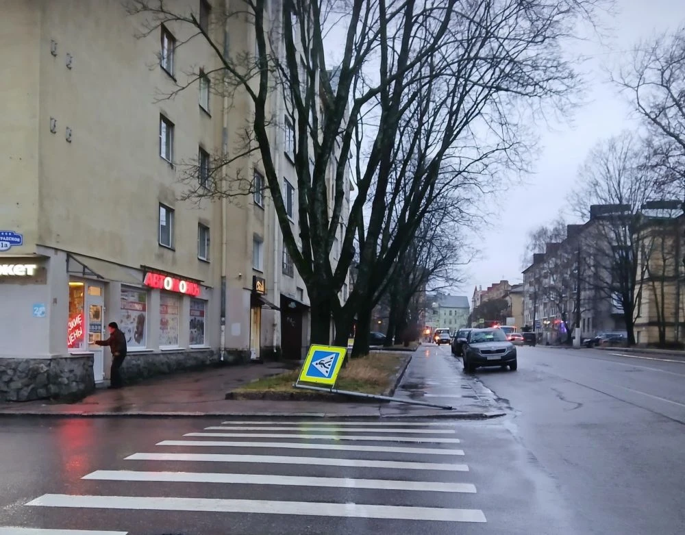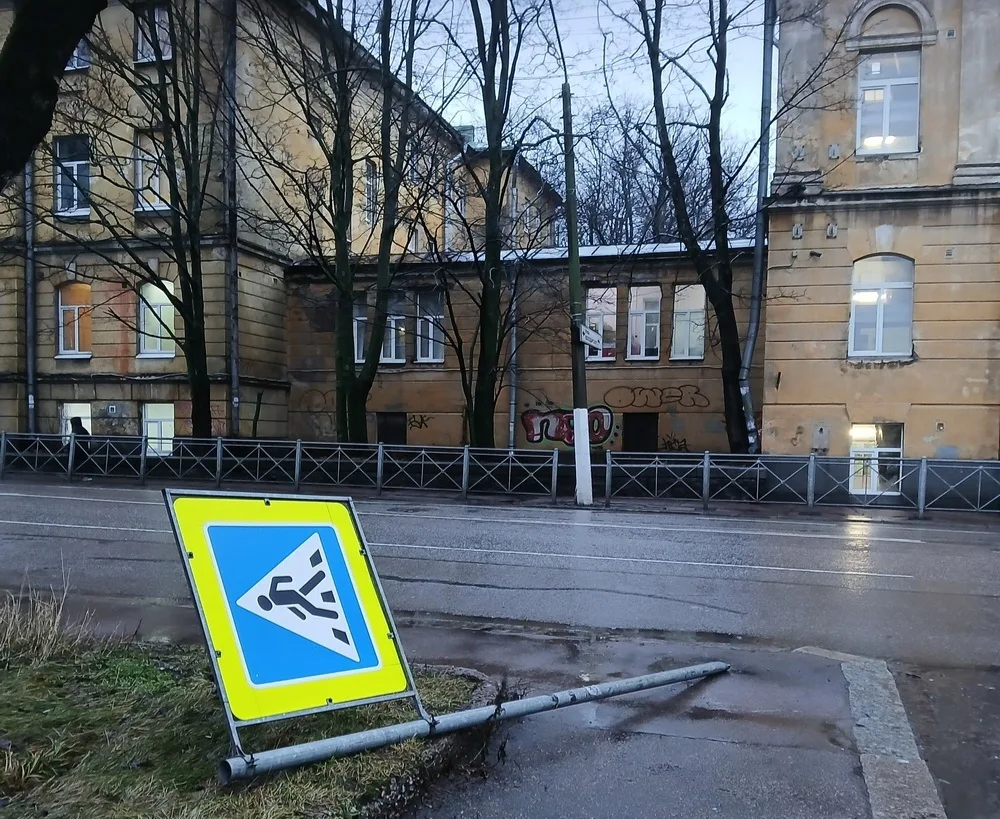 У дома 21А по Ленинградскому шоссе кто-то снёс дорожный знак "Пешеходный переход".
