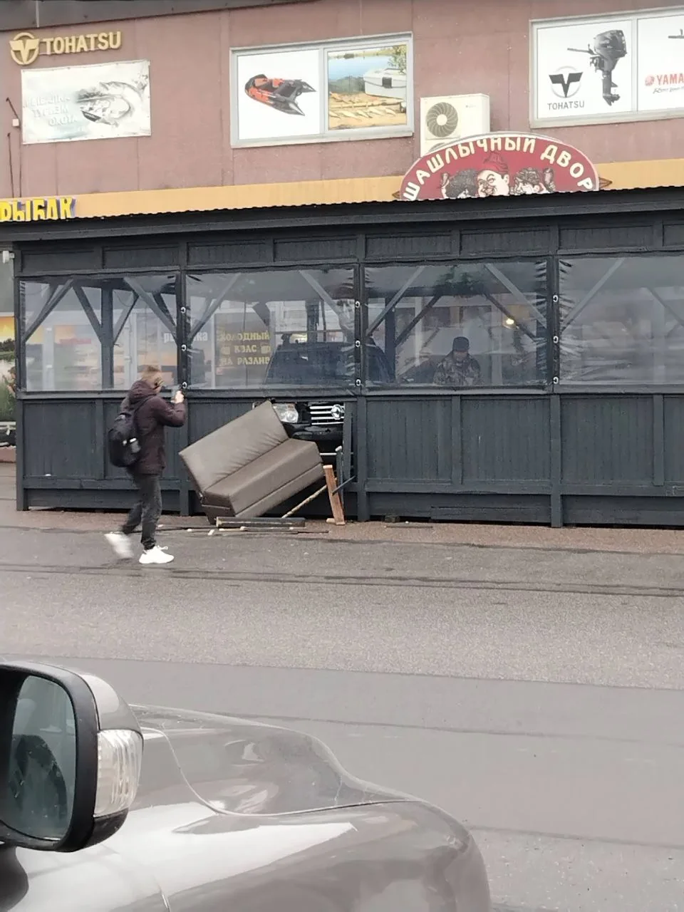 В Выборге автоледи на внедорожнике протаранила веранду ресторана!