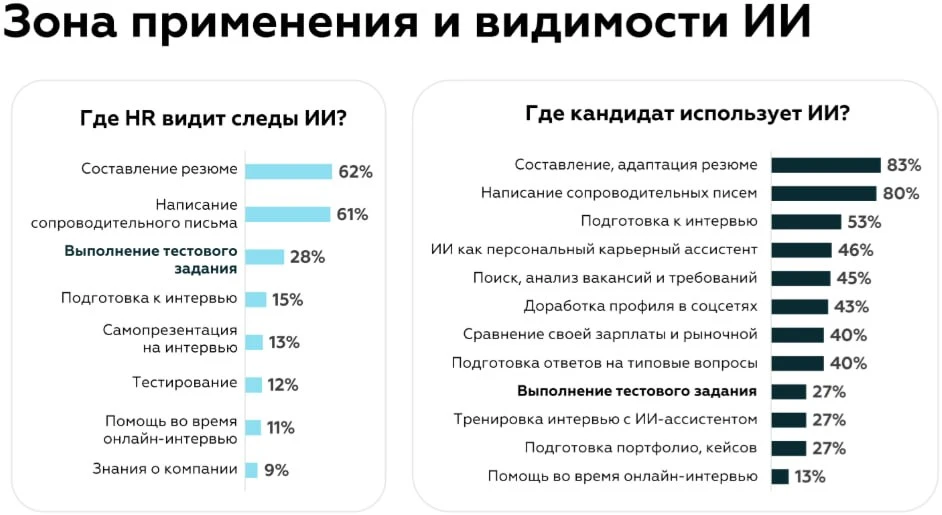 🔶Рекрутеры отмечают, что кандидаты все чаще привлекают ИИ для составления резюме, сопроводительных писем и выполнению тестовых заданий.