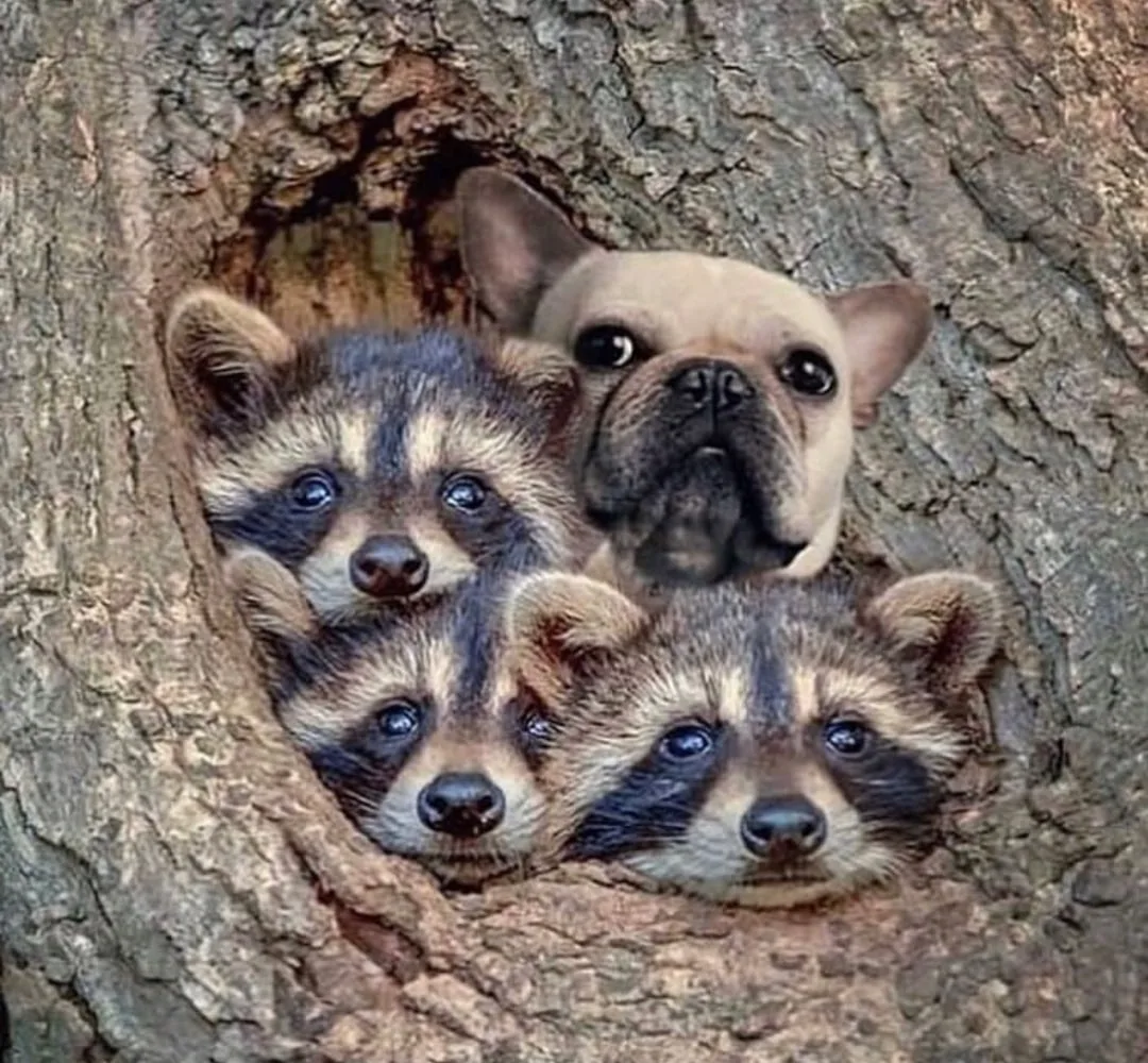 Французский бульдог - бесплатно жил у семьи енотов, выдавая себя за дальнего родственника. 😁