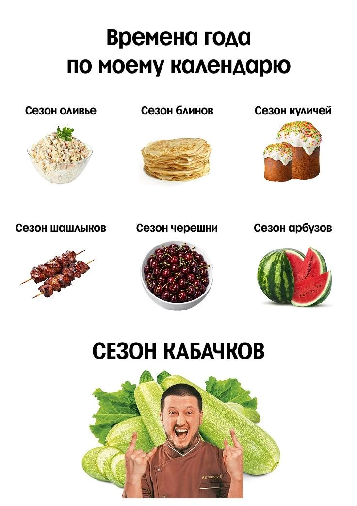 От оливье до кабачков всего каких то пару шашлыков с блинами.