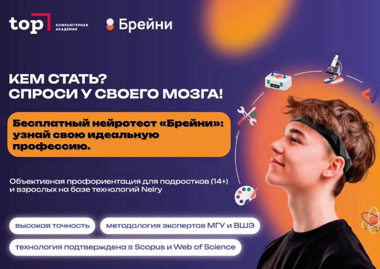 Международная Компьютерная Академия ТОП совместно с «Брейни» предлагают бесплатно пройти нейродиагностику, основанную на научных исследованиях и проверенную экспертами.
