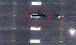 Новые снимки спутника показывают, что ещё один тяжёлый вертолёт CH-47 Chinook армии США был поражён на 29°21'12.23"N, 47°31'04.26"E на стартовой площадке/стоянке на базе Camp Buehring в Кувейте.