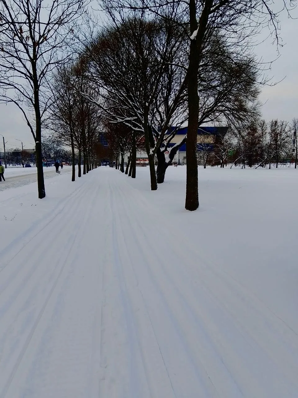 - В Яблоневом саду протяжённость лыжни составляет 1,2 км.