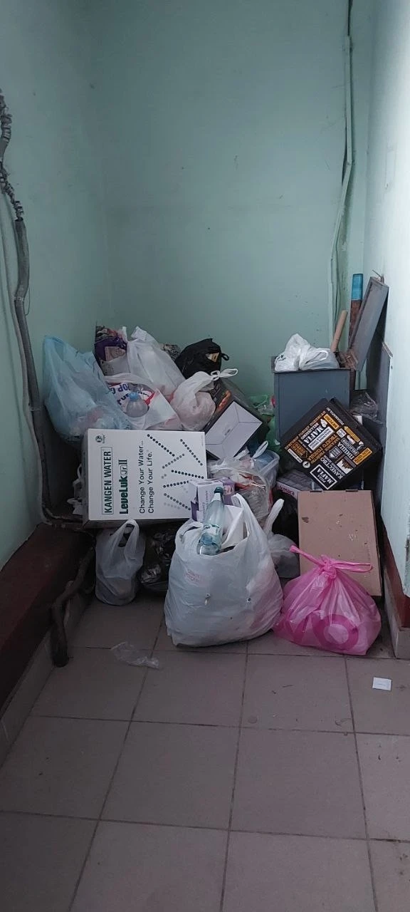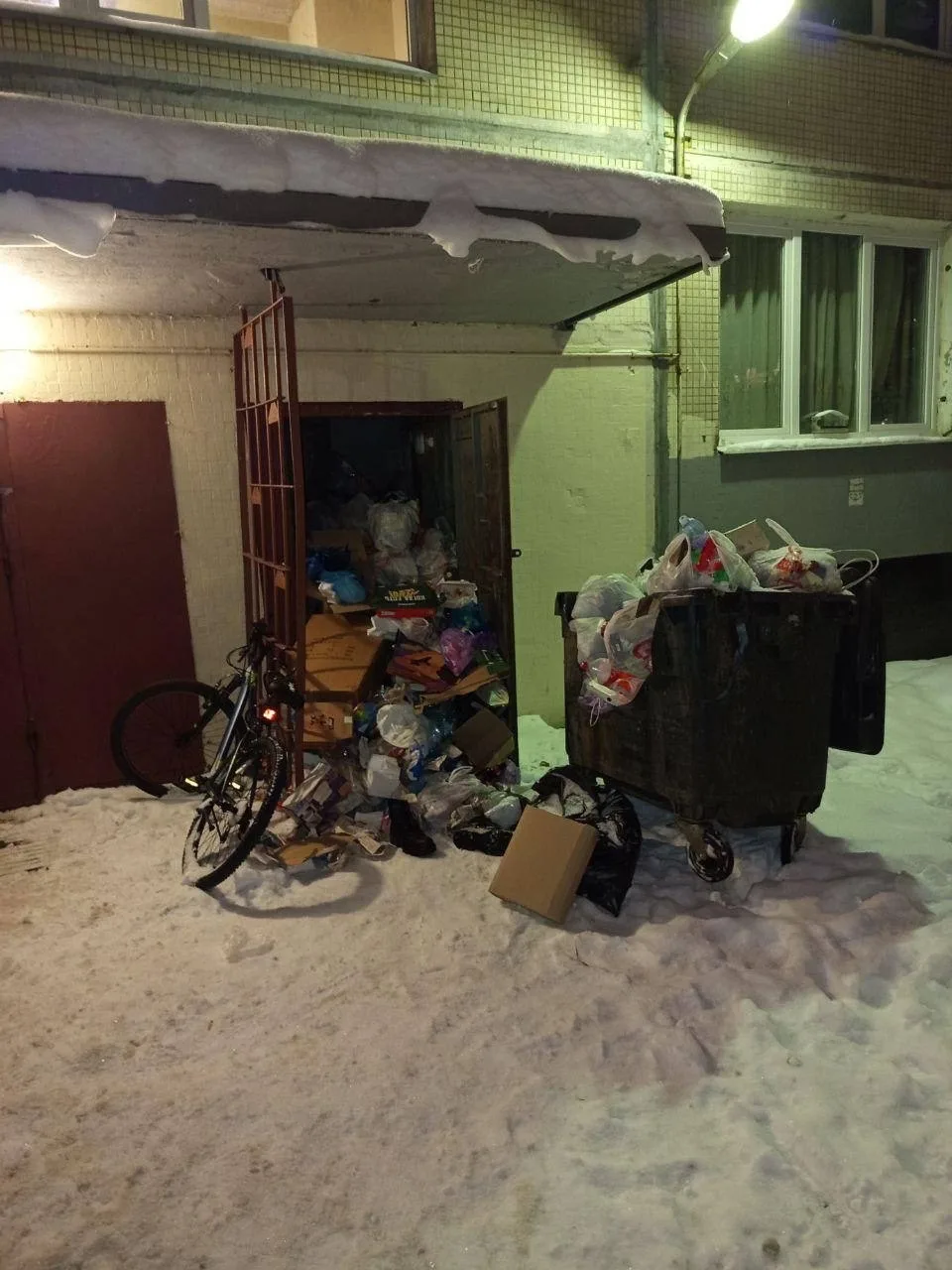 Свалка из 8 квартир. Коммунальные платежи выросли, как и зарплаты уборщиков, а бардак остаётся. Примите меры, пожалуйста.