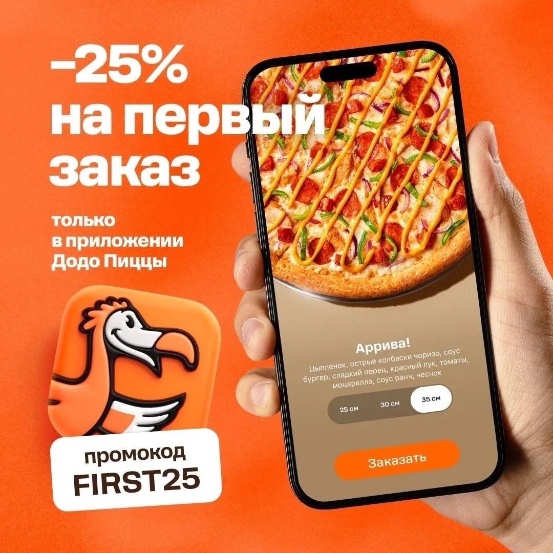 Скидка −25% на первый заказ в мобильном приложении.