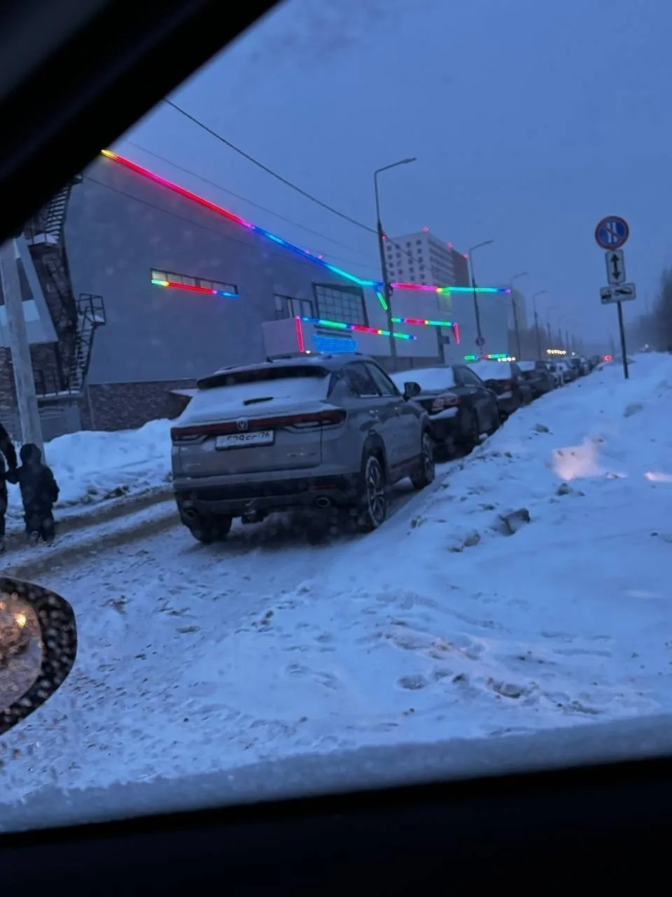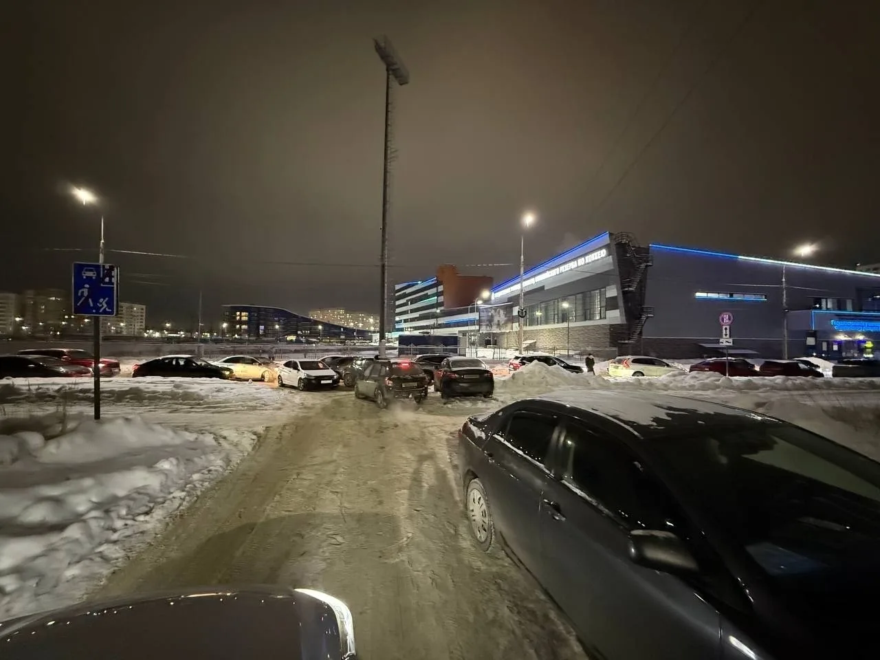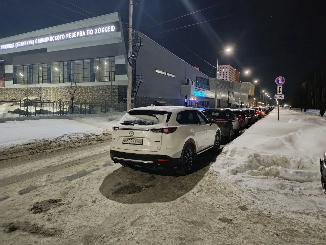 Зимой проезжая часть сужается еще сильнее из-за снега. На самом повороте регулярно паркуются машины посетителей хоккейного училища - обзор перекрыт, маневры опасны, иногда проезд фактически блокируется. При этом это единственный подъезд к дому, в том числе для скорой и пожарных.
