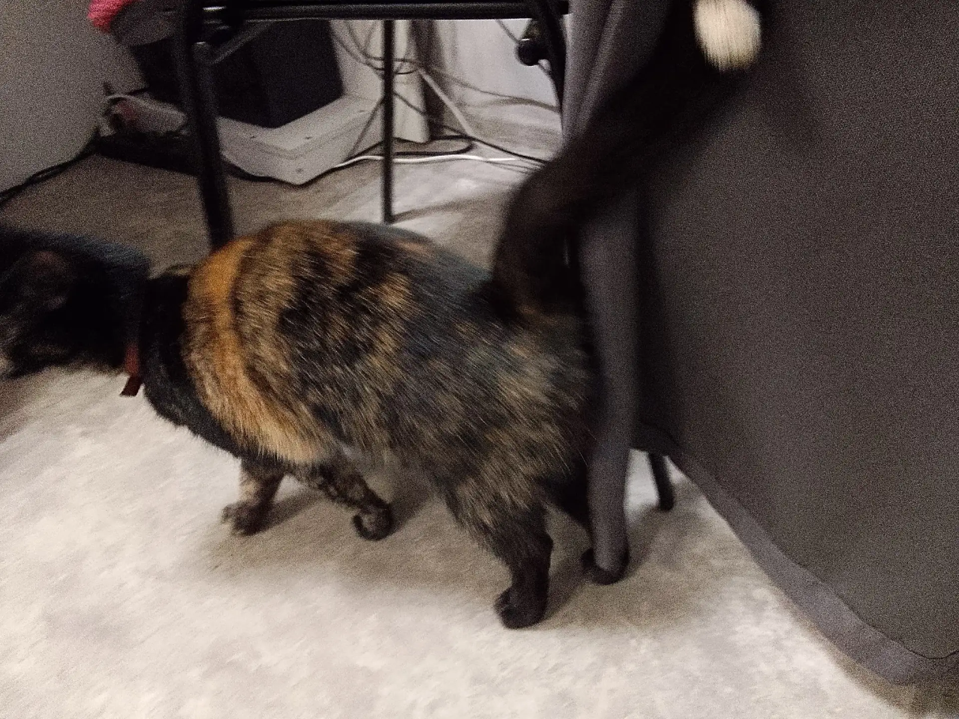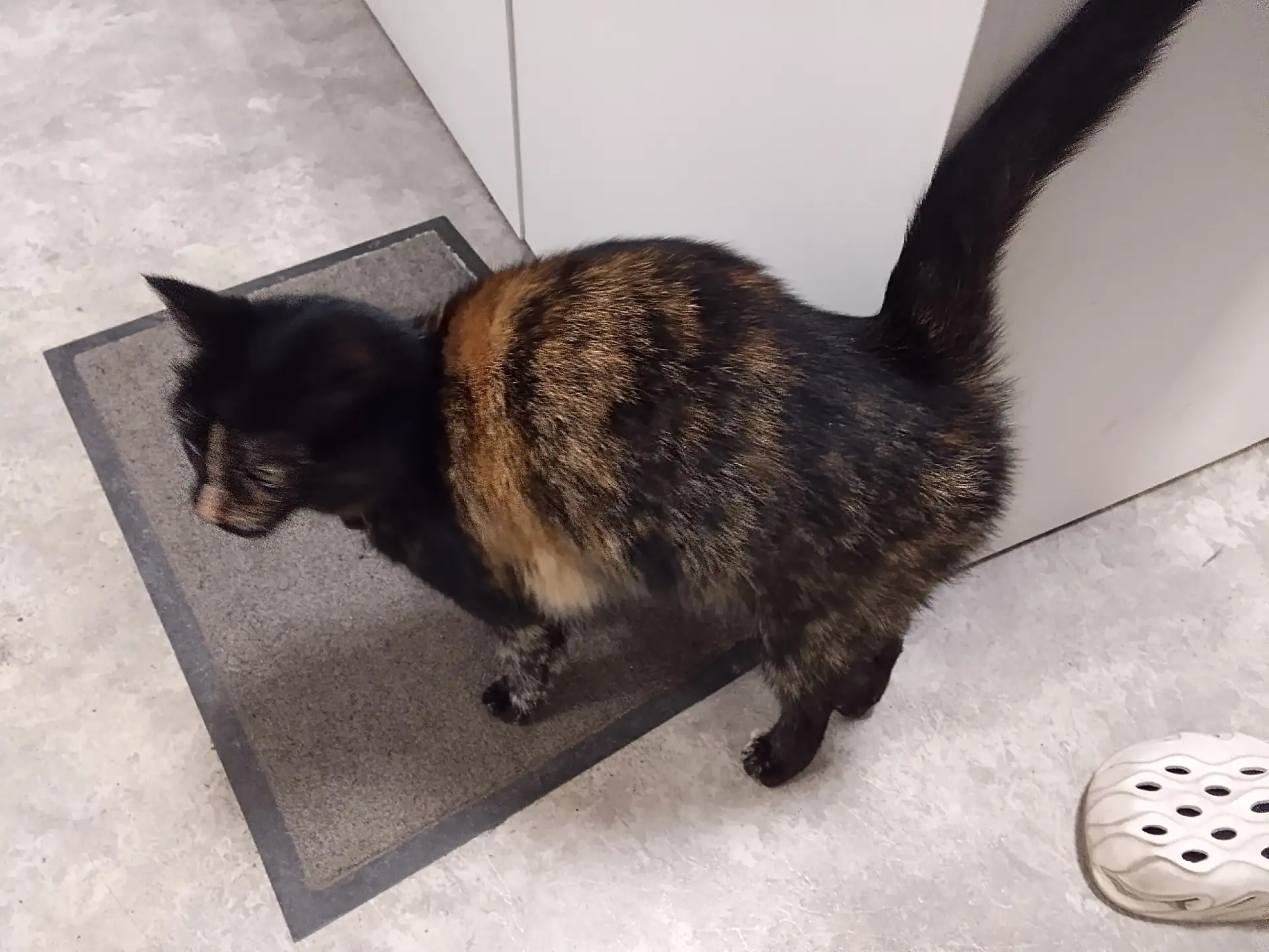 Рядом с Фрунзе 14 ходит кошечка. Зашла в пвз, потом вышла на улицу, но далеко не уходит. С оранжевым ошейником