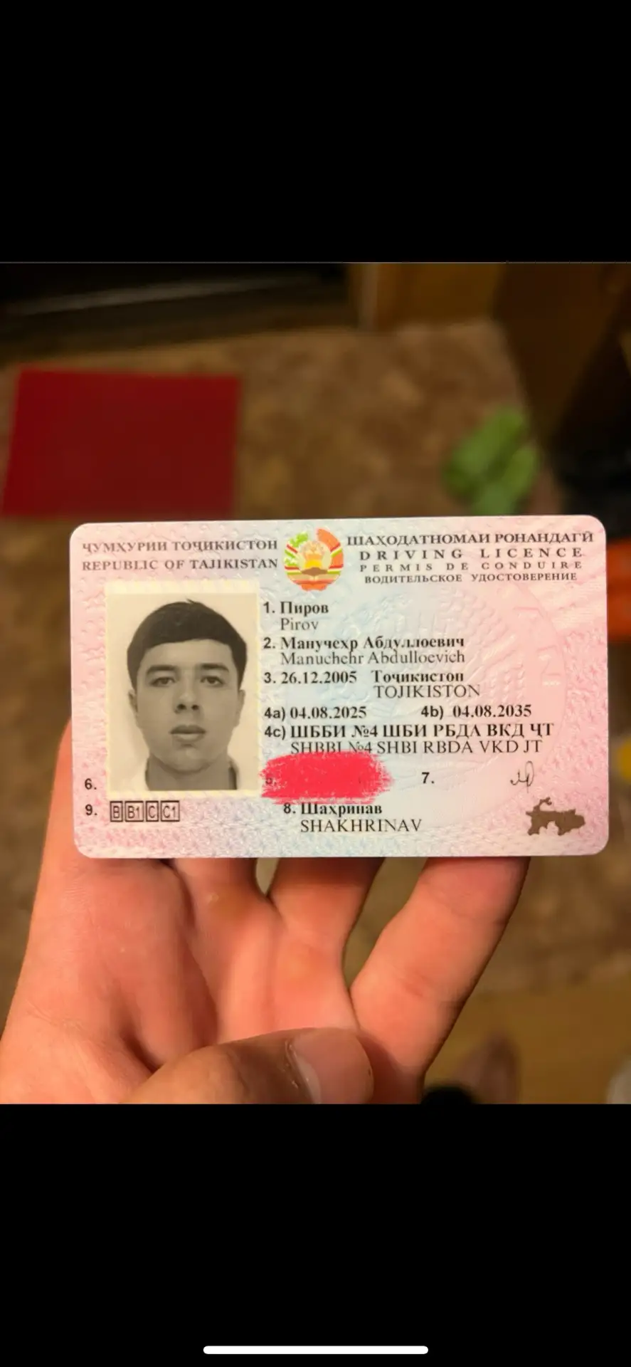 Внутри находятся банковская карта и водительское удостоверение на имя Пирова М.А.