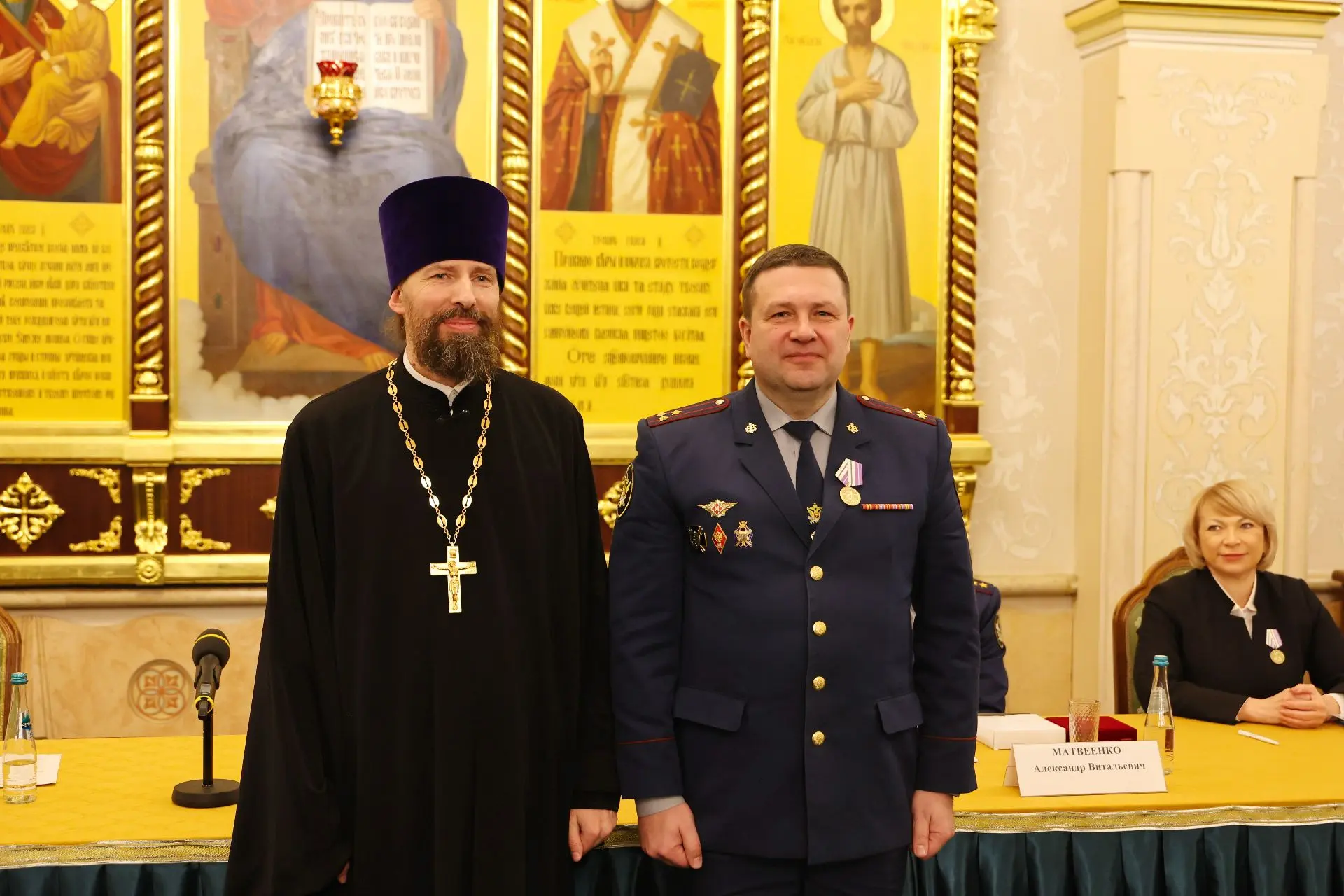 Заместитель директора ФСИН России Александр Матвеенко подчеркнул, что в настоящее время взаимодействие уголовно-исполнительной системы и Русской Православной Церкви продолжает активно развиваться. Об этом свидетельствует множество реализуемых совместных проектов, которые связаны, в первую очередь, с духовным воспитанием осужденных, их подготовкой к освобождению, предотвращением повторных преступлений, проведением развивающих мероприятий и других инициатив, поддержкой образовательных программ по изучению основ православия. Александр Матвеенко подробно рассказал о проводимой ведомством планомерной работе по введению и комплектованию в разных видах учреждений штатных должностей священников. Он отметил вклад личного состава и ветеранов УИС в завершение ремонтно-реставрационных работ и росписи внутреннего убранства Храма преподобного Пимена Угрешского, возведенного в память о сотрудниках уголовно-исполнительной системы, ценой жизни исполнивших свой долг перед Отчизной, защищая основы общества – закон и правопорядок.