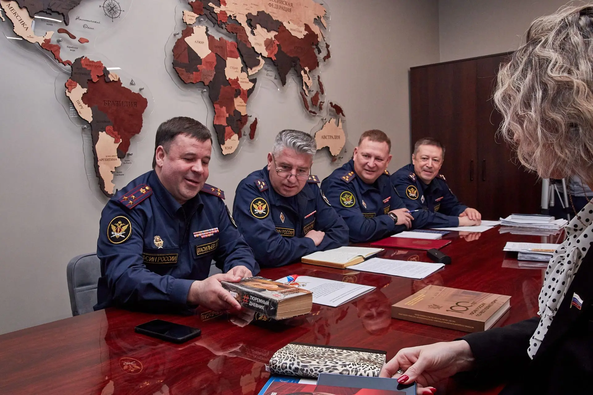 Для гостей была организована экскурсия, которая включила в себя посещение библиотечного комплекса, постоянно действующей экспозиции по истории УИС Кировской области и Кировского ИПКР ФСИН России, передвижной выставки «Для СВОих», расположенной на базе института
