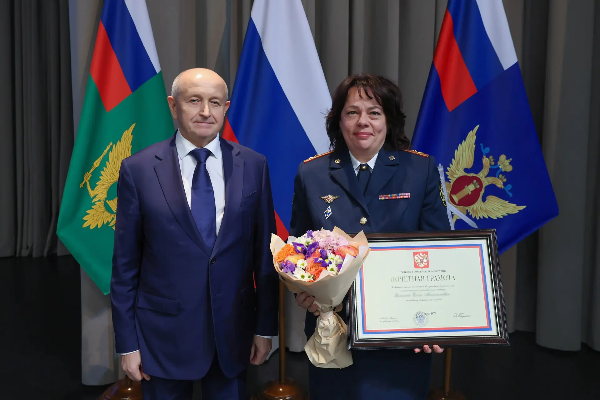Отдельное внимание в праздничный день руководство Службы уделило работникам Минюста России. Аркадий Гостев отметил их ведомственными наградами Федеральной службы исполнения наказаний на торжественной церемонии, состоявшейся при участии заместителя Министра юстиции Российской Федерации Вадима Баланина и заместителей директора ФСИН России.