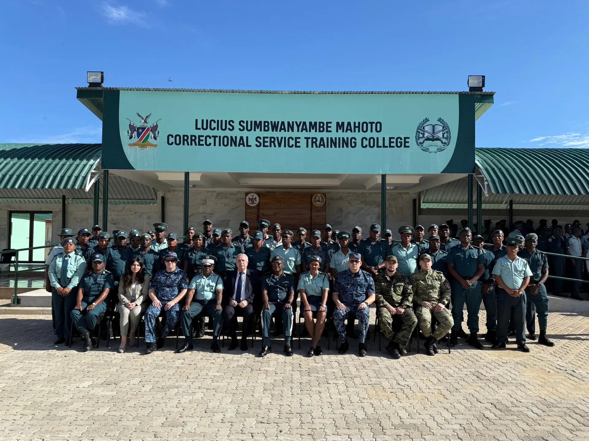 16 февраля в Учебном колледже имени Луциуса Сумбавиямбе Махото (г. Омаруру) состоялась торжественная церемония открытия учебной программы. В мероприятии приняли участие Генеральный комиссар НИС Рафаэль Тухафени Хамуньела, заместитель комиссара Ибренсия З. Ван Дер Вестхейзен, комендант учебного заведения.