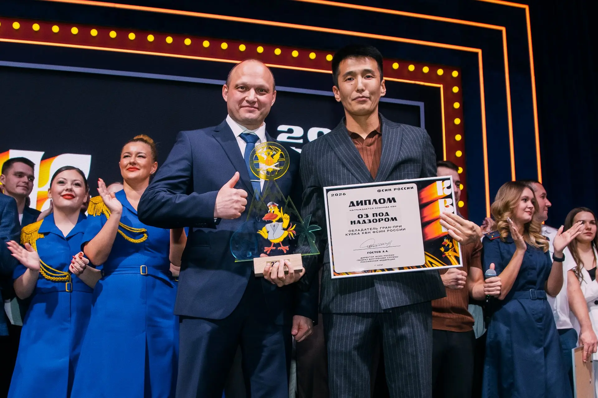 Высшую награду Кубка КВН Гран-при вручили дебютантам Кубка, команде КВН УФСИН России по Республике Бурятия. Победители и участники игры награждены специальными кубками и дипломами.