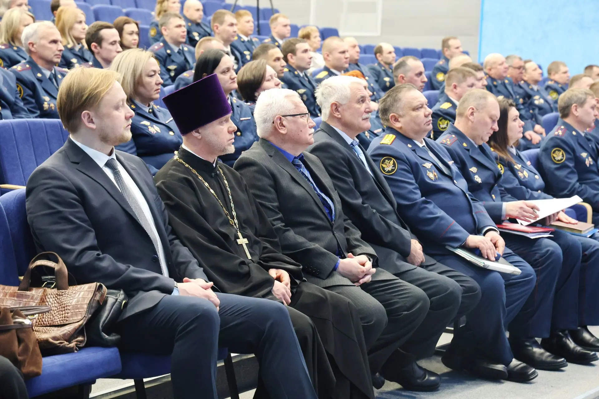 Важные аспекты тюремного служения в своих выступлениях отметили заместитель Министра юстиции Российской Федерации Вадим Баланин, заместитель директора ФСИН России генерал-лейтенант внутренней службы Александр Матвеенко, начальник Управления организации исполнения наказаний, не связанных с изоляцией осужденных от общества, ФСИН России генерал-майор внутренней службы Елена Коробкова, врио начальника Управления воспитательной, социальной и психологической работы ФСИН России полковник внутренней службы Сергей Нечаев, врио начальника Управления цифровой трансформации ФСИН России полковник внутренней службы Сергей Лебедев, начальник ГУФСИН России по г. Москве генерал-лейтенант внутренней службы Сергей Мороз, начальник Академии ФСИН России генерал-лейтенант внутренней службы Сергей Никитюк, начальник Университета ФСИН России генерал-майор внутренней службы Александр Вотинов.