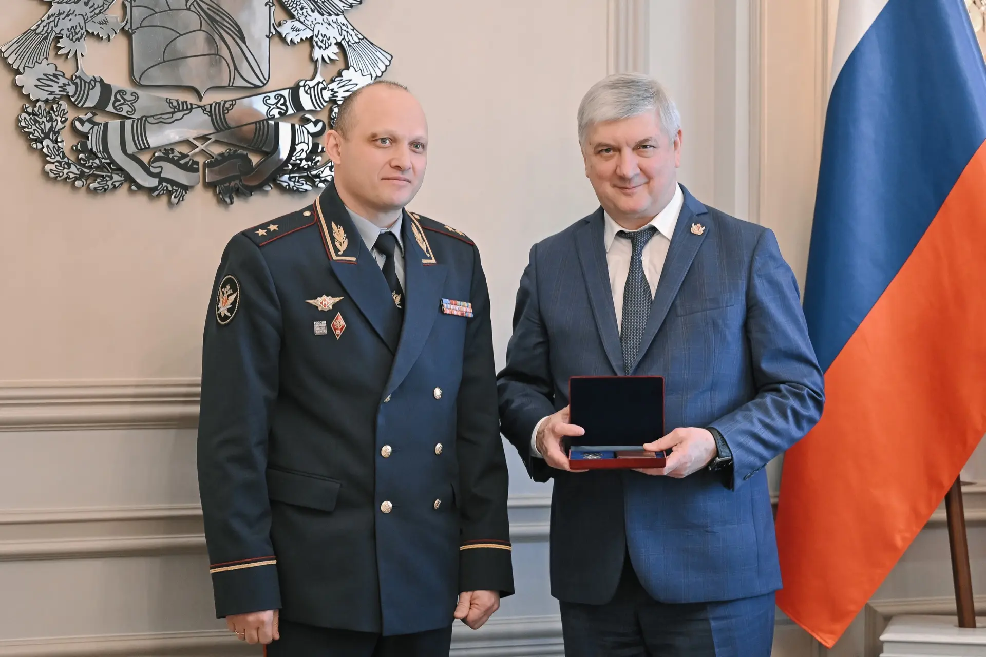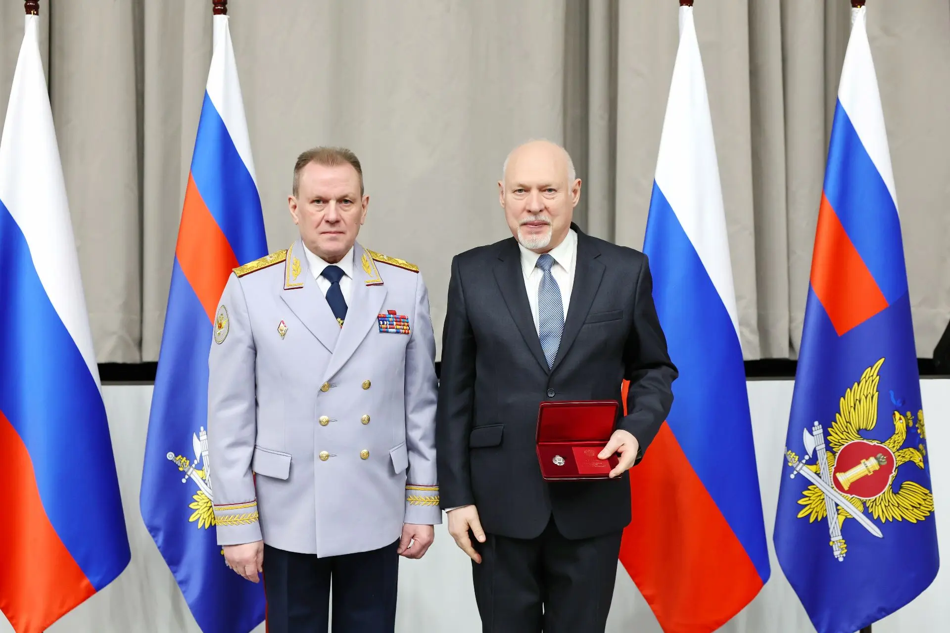 💯 В завершение встречи Александр Матвеенко по поручению директора ФСИН России генерала внутренней службы Российской Федерации Аркадия Гостева вручил Александру Гусеву серебряную медаль «За вклад в развитие уголовно-исполнительной системы России».