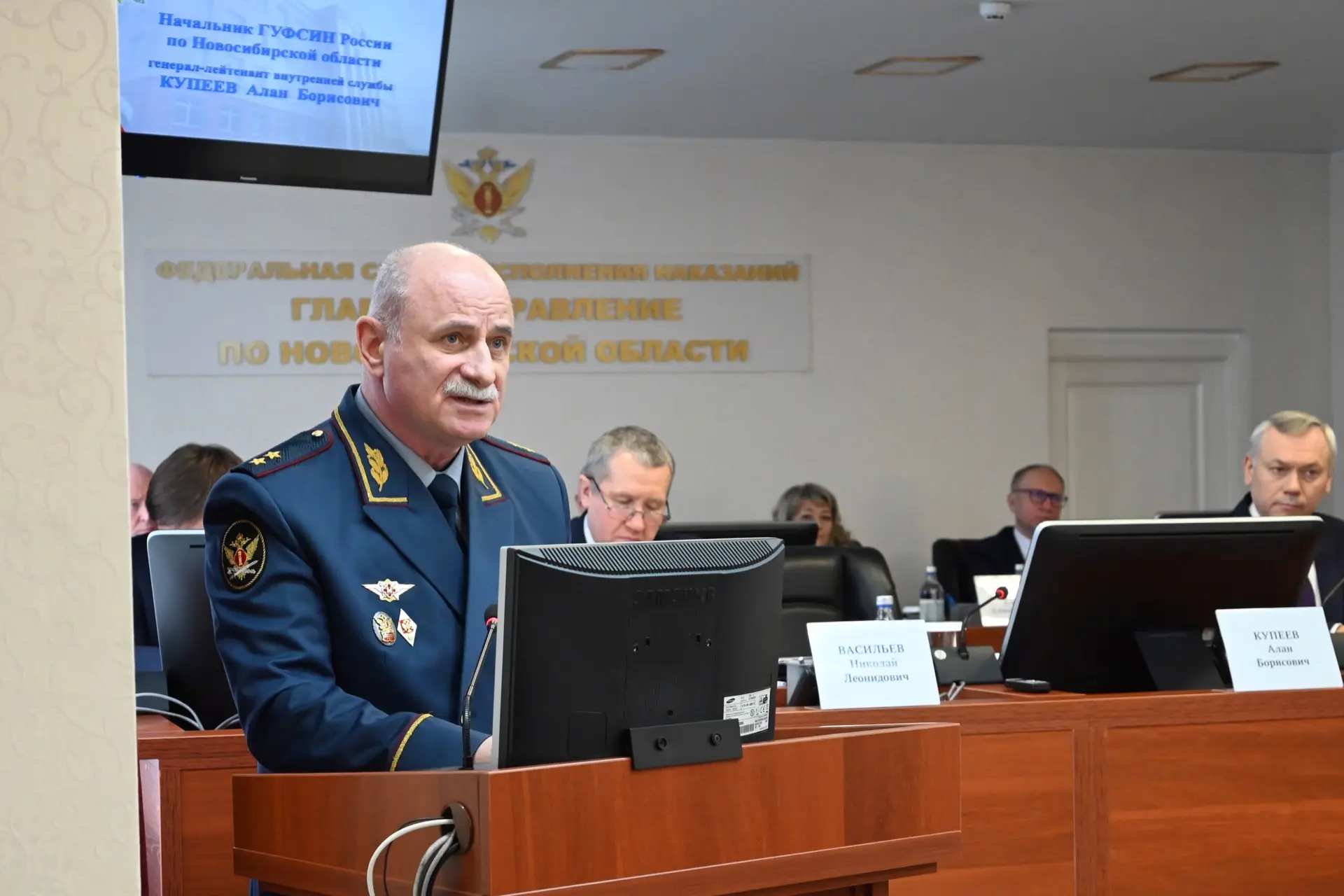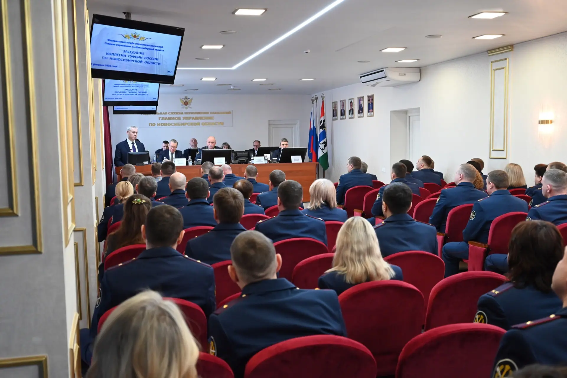 В территориальном органе ФСИН России состоялось заседание коллегии по итогам оперативно-служебной, финансово-экономической и производственно-хозяйственной деятельности за 2025 год, которое проходило под председательством начальника ГУФСИН генерал-лейтенанта внутренней службы Алана Купеева и начальника Главного оперативного управления ФСИН России генерал-лейтенанта внутренней службы Николая Васильева. В мероприятии приняли участие Губернатор Новосибирской области Андрей Травников, представители органов государственной власти, надзорных органов и силовых ведомств.