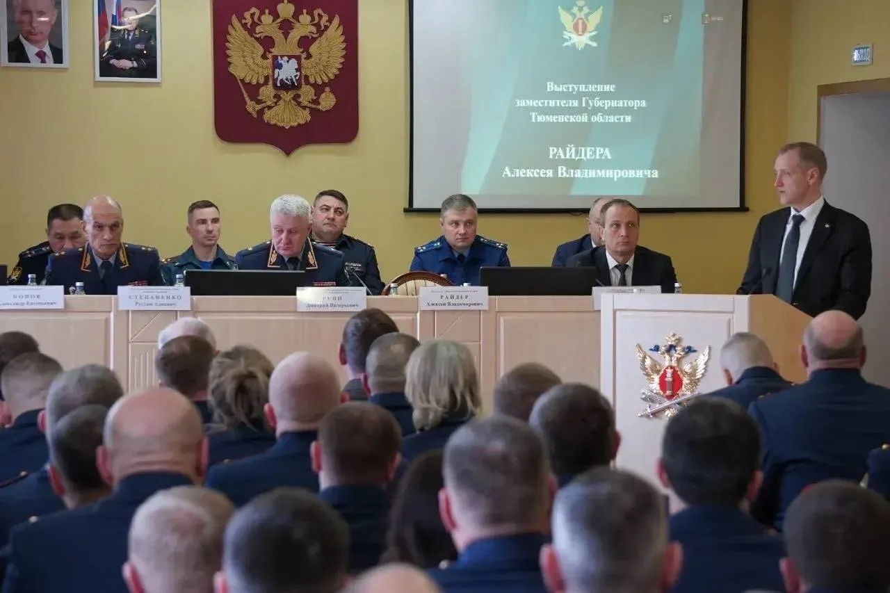 В расширенном заседании коллегии по итогам деятельности УФСИН России по Тюменской области за 2025 год под председательством заместителя директора ФСИН России генерал-лейтенанта внутренней службы Рустама Степаненко и начальника областного пенитенциарного ведомства генерал-майора внутренней службы Дмитрия Руппа приняли участие заместитель Губернатора Тюменской области Алексей Райдер, главный федеральный инспектор по Тюменской области Дмитрий Кузьменко, Уполномоченный по правам человека в субъекте федерации Олег Датских, прокурор региона Александр Попов, представители взаимодействующих органов, общественных организаций, руководящий состав Управления и учреждений уголовно-исполнительной системы Тюменской области.